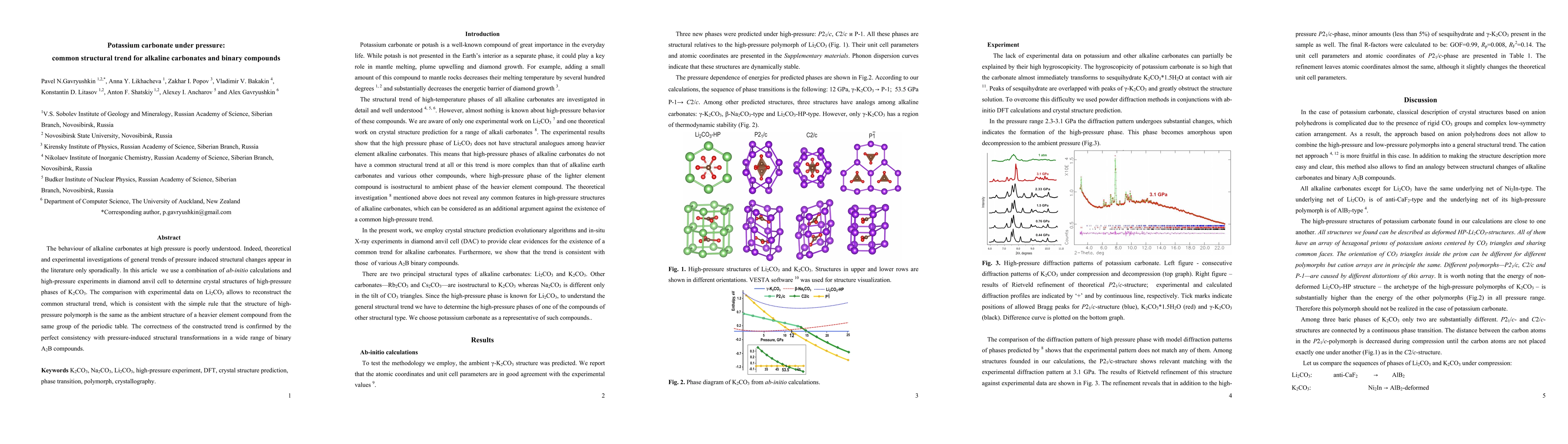 This paper combines ab-initio calculations and high-pressure experiments to determine the structural changes of K2CO3 under pressure, revealing a common structural trend for alkaline carbonates. The trend follows a simple rule where high-pressure polymorphs resemble the ambient structure of a heavier element compound from the same group, validated by its consistency across various binary A2B compounds.