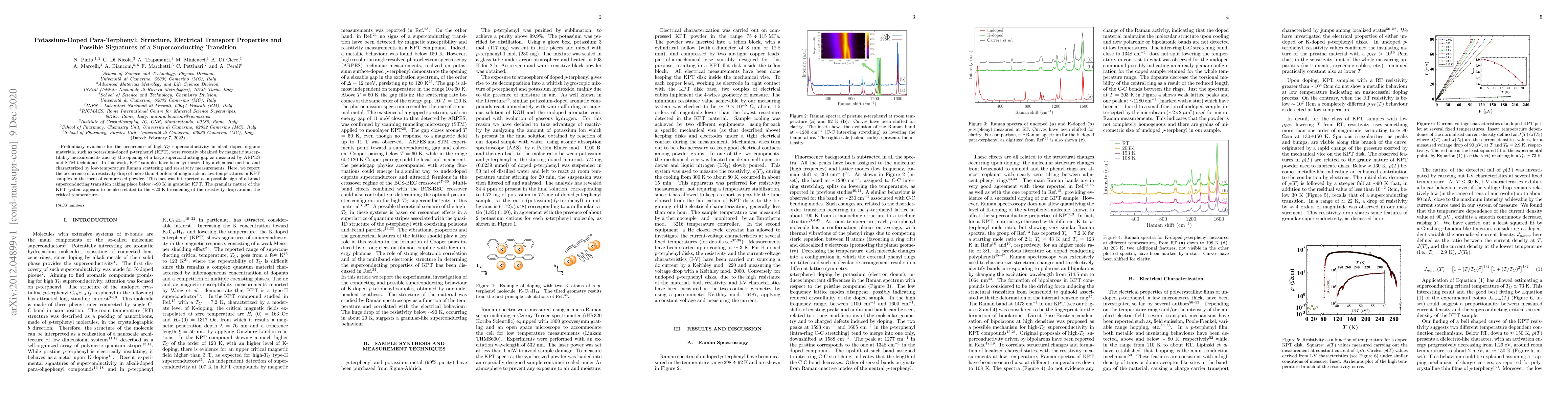 This study investigates potassium-doped para-terphenyl (KPT) for signs of superconductivity, reporting a significant resistivity drop at low temperatures indicative of a possible superconducting transition below 90 K, with granular KPT exhibiting a broadened resistivity drop around the critical temperature.