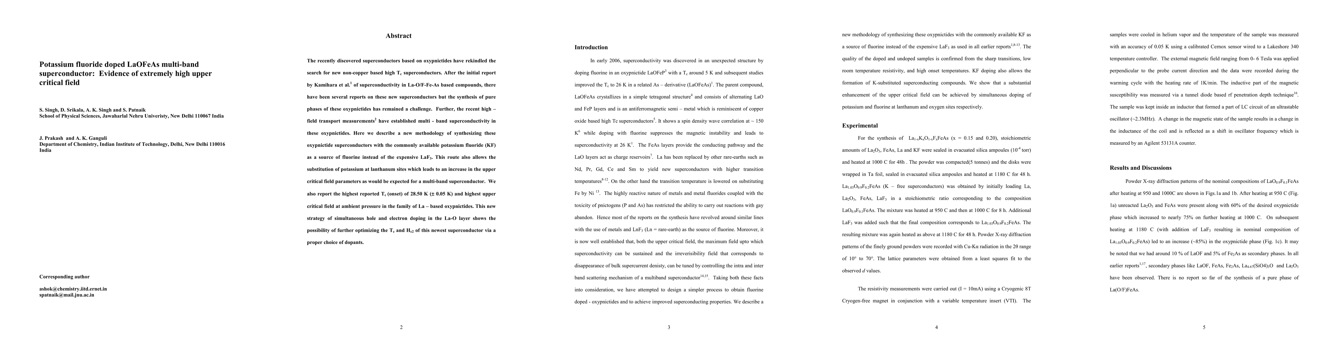 This work provides a novel synthesis route for lanthanum-based oxypnictide superconductors using an inexpensive fluorinating agent, KF, and optimizes upper critical field parameters in multiband superconductors.