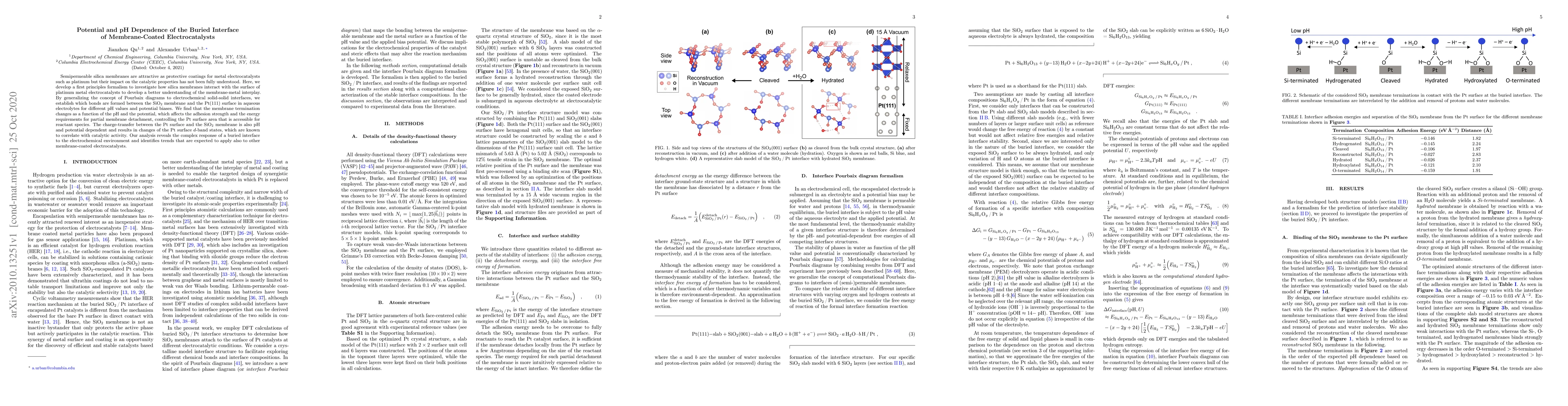 Semipermeable silica membranes are attractive as protective coatings for metal electrocatalysts such as platinum but their impact on the catalytic properties has not been fully understood. Here, we develop a first principles formalism to investigate how silica membranes interact with the surface of platinum metal electrocatalysts to develop a better understanding of the membrane-metal interplay. By generalizing the concept of Pourbaix diagrams to electrochemical solid-solid interfaces, we establish which bonds are formed between the SiO$_2$ membrane and the Pt(111) surface in aqueous electrolytes for different pH values and potential biases. We find that the membrane termination changes as a function of the pH and the potential, which affects the adhesion strength and the energy requirements for partial membrane detachment, controlling the Pt surface area that is accessible for reactant species. The charge-transfer between the Pt surface and the SiO$_2$ membrane is also pH and potential dependent and results in changes of the Pt surface d-band states, which are known to correlate with catalytic activity. Our analysis reveals the complex response of a buried interface to the electrochemical environment and identifies trends that are expected to apply also to other membrane-coated electrocatalysts.