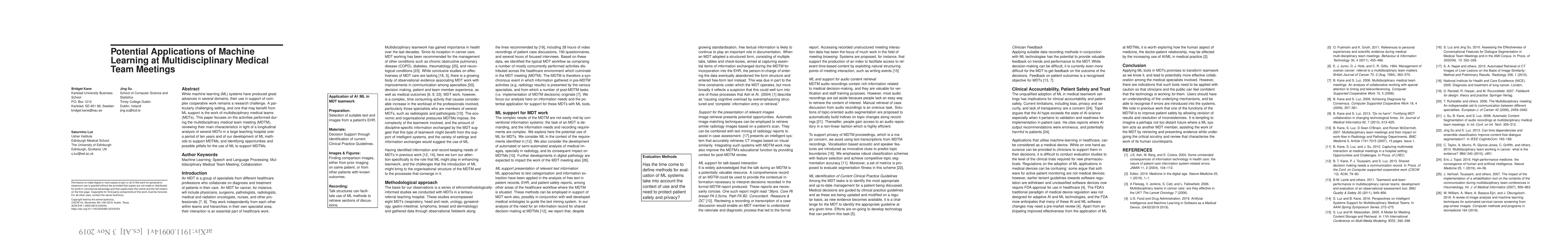 This paper explores the potential applications of machine learning to enhance multidisciplinary medical team meetings, analyzing their characteristics through a decade-long study and proposing ML methods to support these complex collaborative activities while identifying associated challenges and risks.