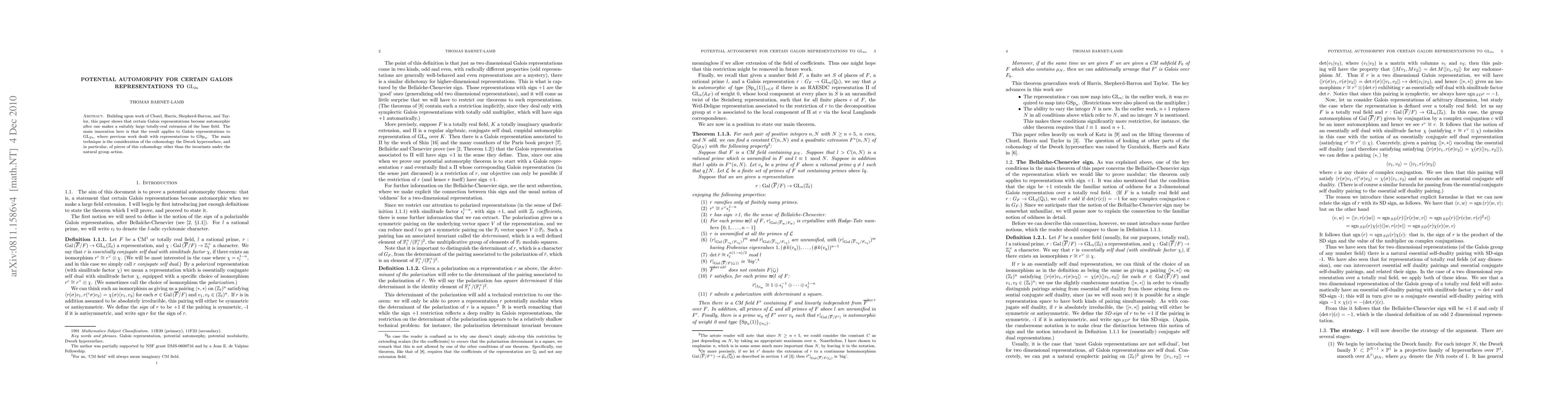 Building upon work of Clozel, Harris, Shepherd-Barron, and Taylor, this paper shows that certain Galois representations become automorphic after one makes a suitably large totally-real extension to the base field. The main innovation here is that the result applies to Galois representations to GL_{2n}, where previous work dealt with representations to GSp_n. The main technique is the consideration of the cohomology the Dwork hypersurface, and in particular, of pieces of this cohomology other than the invariants under the natural group action.