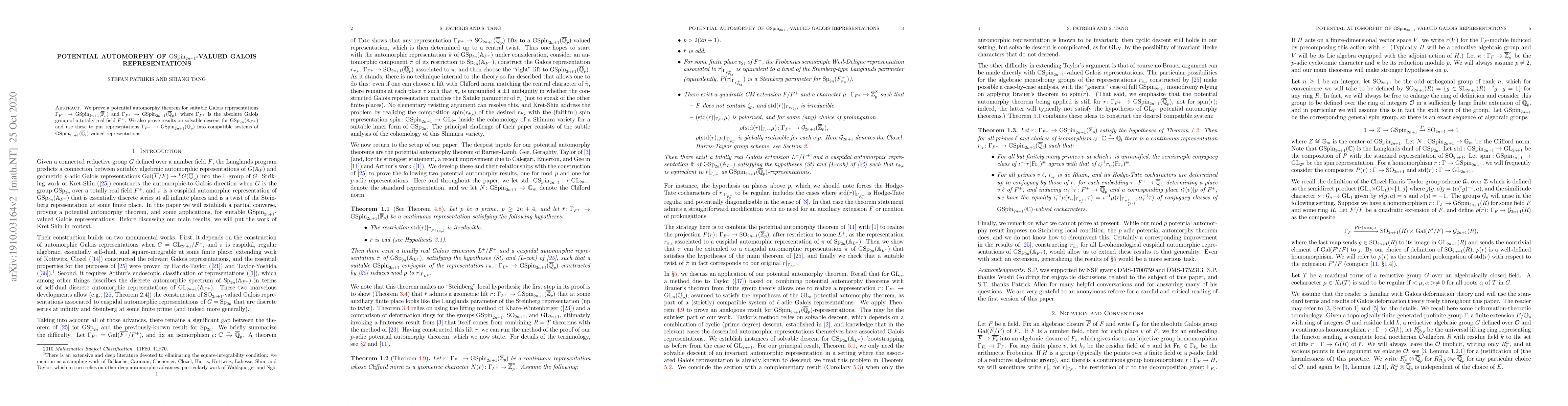 This paper proves a potentially automorphic theorem for Galois representations associated with $\mathrm{GSpin}_{2n+1}$ over totally real fields, establishing solvable descent and compatible systems for $\mathrm{GSpin}_{2n+1}$-valued representations. The results extend the understanding of automorphic forms linked to these spin groups.