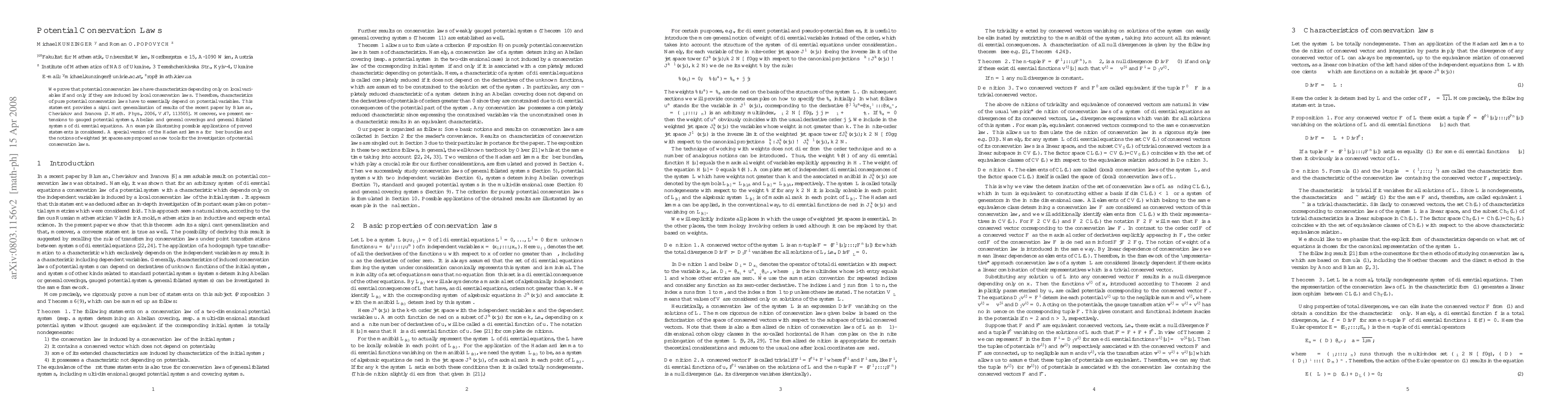 This paper demonstrates that potential conservation laws' characteristics depend solely on local variables if derived from local conservation laws, thereby extending prior work by Bluman et al. It also introduces new tools, such as the Hadamard lemma for fiber bundles, to explore potential conservation laws in gauged systems and foliated differential equations.