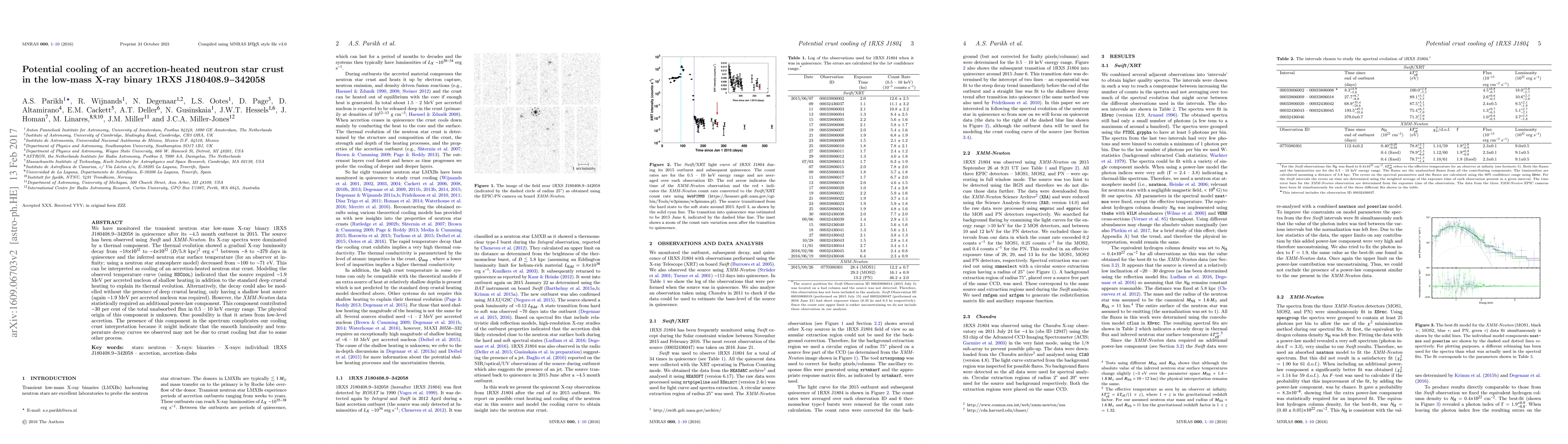 A neutron star in a low-mass X-ray binary has cooled down significantly after an outburst, suggesting that its crust is cooling due to accretion heat. The source's thermal evolution was monitored using Swift and XMM-Newton observations.