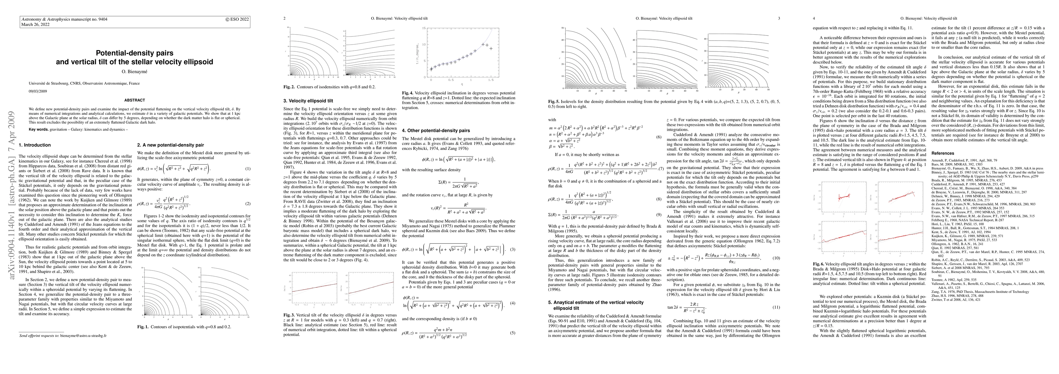 This paper introduces new potential-density pairs to study the vertical tilt, $\delta$, of the stellar velocity ellipsoid. It finds that the potential flattening significantly affects $\delta$, with a 5-degree difference at 1 kpc above the Galactic plane, depending on the shape of the dark matter halo, thus ruling out an extremely flattened dark halo.
