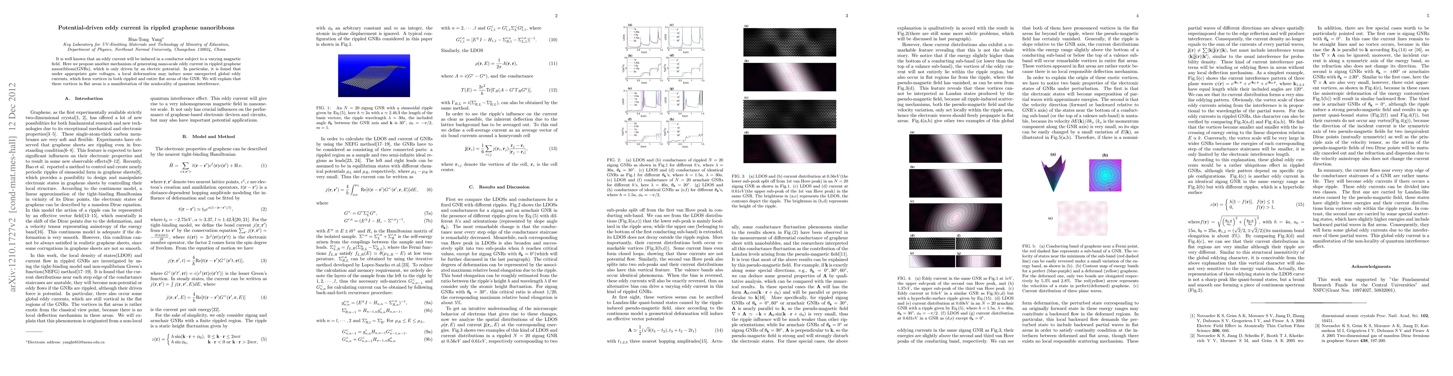 This paper proposes a novel method to generate nano-scale eddy currents in rippled graphene nanoribbons driven solely by an electric potential, revealing unexpected global eddy currents and vortices due to local deformations, which exhibit the nonlocality of quantum interference.