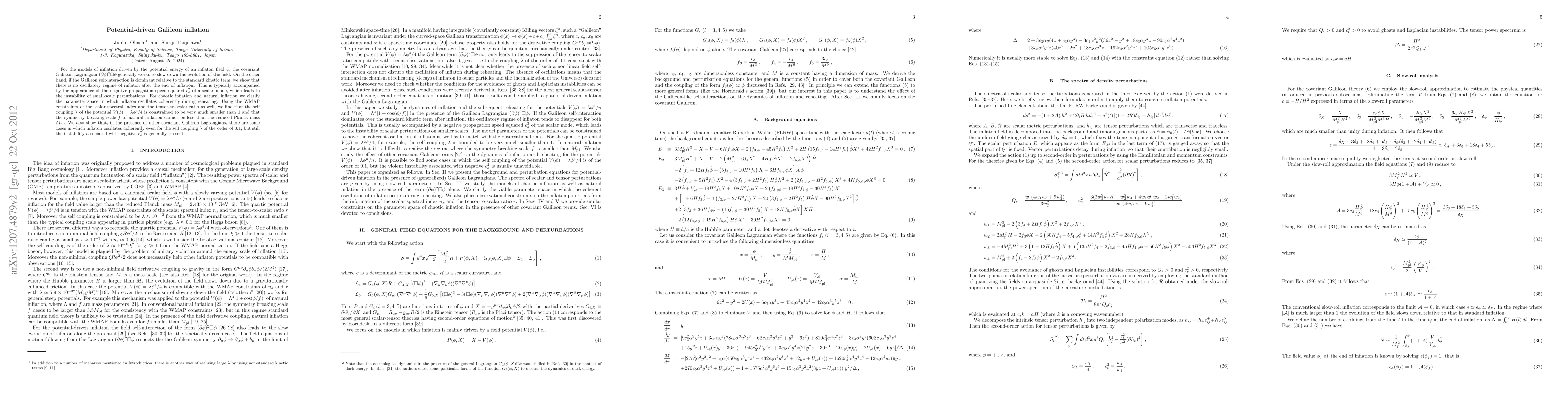 This paper explores Galileon inflation models where the inflaton field's potential energy drives inflation. It finds that dominant Galileon self-interactions can prevent post-inflation oscillations and lead to instability due to negative propagation speed squared $c_s^2$. The study constrains the self-coupling $\lambda$ and symmetry breaking scale $f$ based on observational data, showing that coherent inflaton oscillations are typically limited.