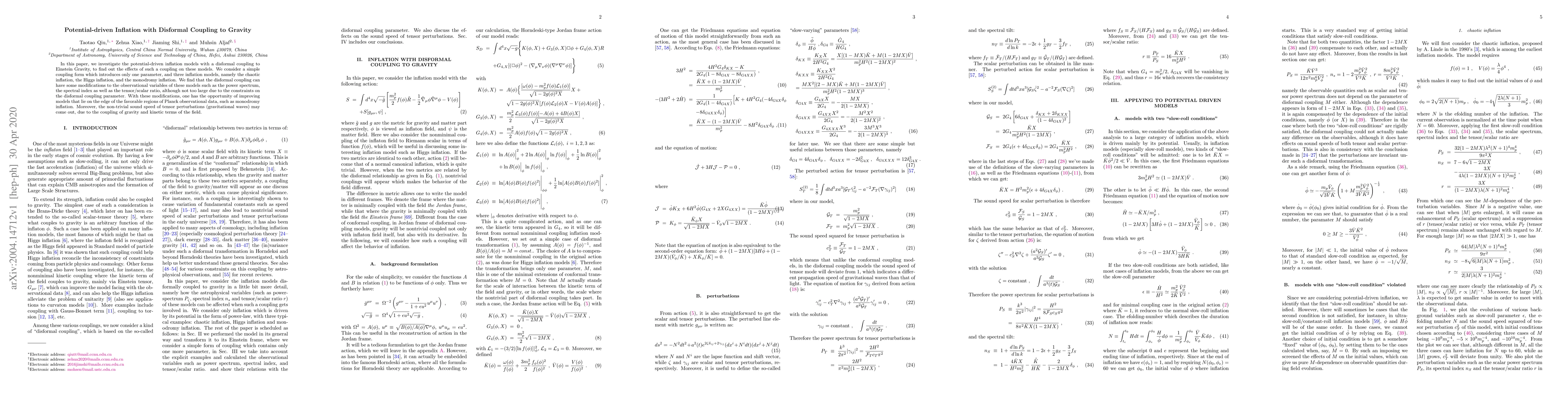 This paper explores potential-driven inflation models with disformal coupling to Einstein Gravity, finding that the coupling can slightly modify observational variables like the power spectrum and tensor/scalar ratio, potentially improving models like monodromy inflation. It also suggests the emergence of a non-trivial sound speed for tensor perturbations due to the coupling.