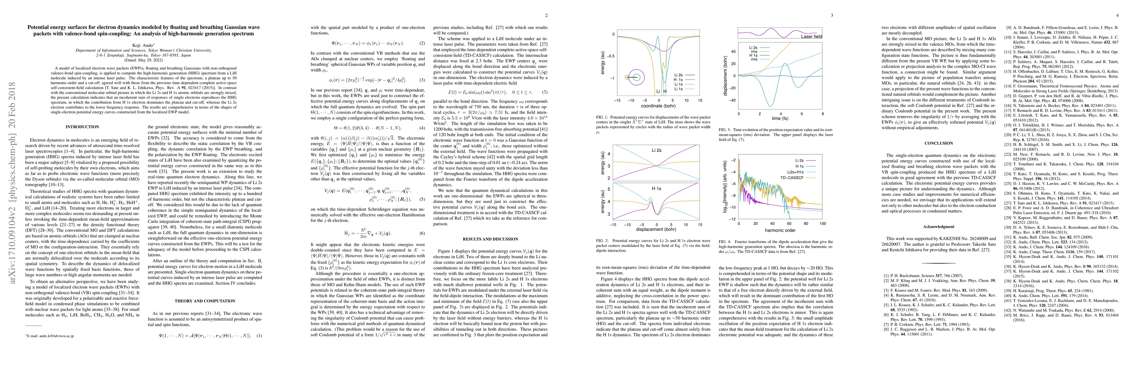 A model of localized electron wave packets (EWPs), floating and breathing Gaussians with non-orthogonal valence-bond spin-coupling, is applied to compute the high-harmonic generation (HHG) spectrum from a LiH molecule induced by an intense laser pulse. The characteristic features of the spectrum, a plateau up to 50 harmonic-order and a cut-off, agreed well with those from the previous time-dependent complete active-space self-consistent-field calculation [T. Sato and K. L. Ishikawa, Phys. Rev. A \textbf{91}, 023417 (2015)]. In contrast with the conventional molecular orbital picture in which the Li 2s and H 1s atomic orbitals are strongly mixed, the present calculation indicates that an incoherent sum of responses of single electrons reproduces the HHG spectrum, in which the contribution from H 1s electron dominates the plateau and cut-off, whereas the Li 2s electron contributes to the lower frequency response. The results are comprehensive in terms of the shapes of single-electron potential energy curves constructed from the localized EWP model.