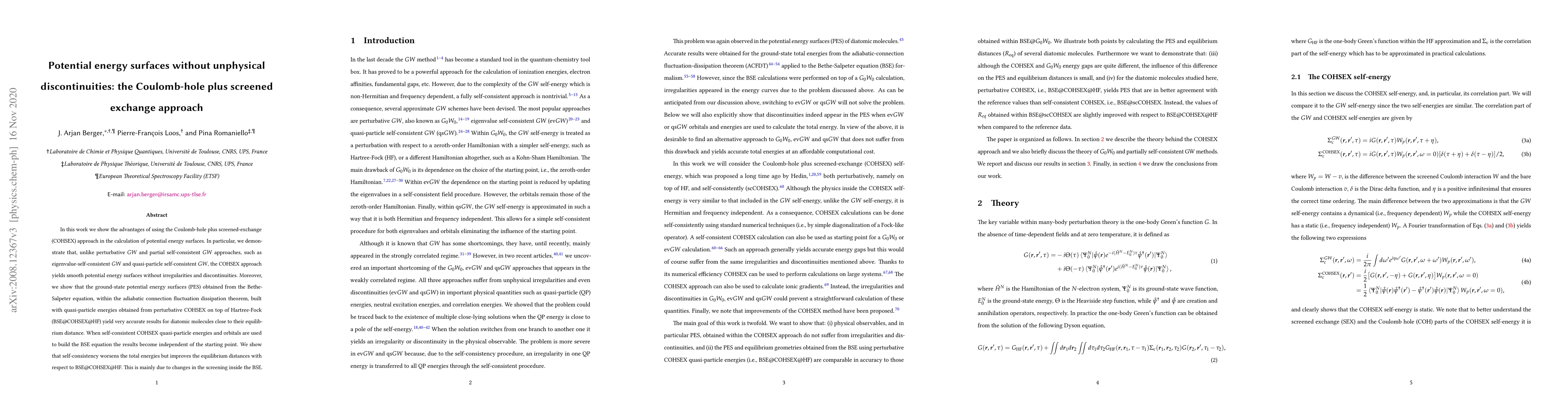 This paper demonstrates the COHSEX approach's advantages in producing smooth potential energy surfaces without discontinuities, unlike other $GW$ methods. The COHSEX approach, when combined with the Bethe-Salpeter equation, yields accurate ground-state potential energy surfaces for diatomic molecules, with self-consistent calculations improving equilibrium distances despite worse total energies.
