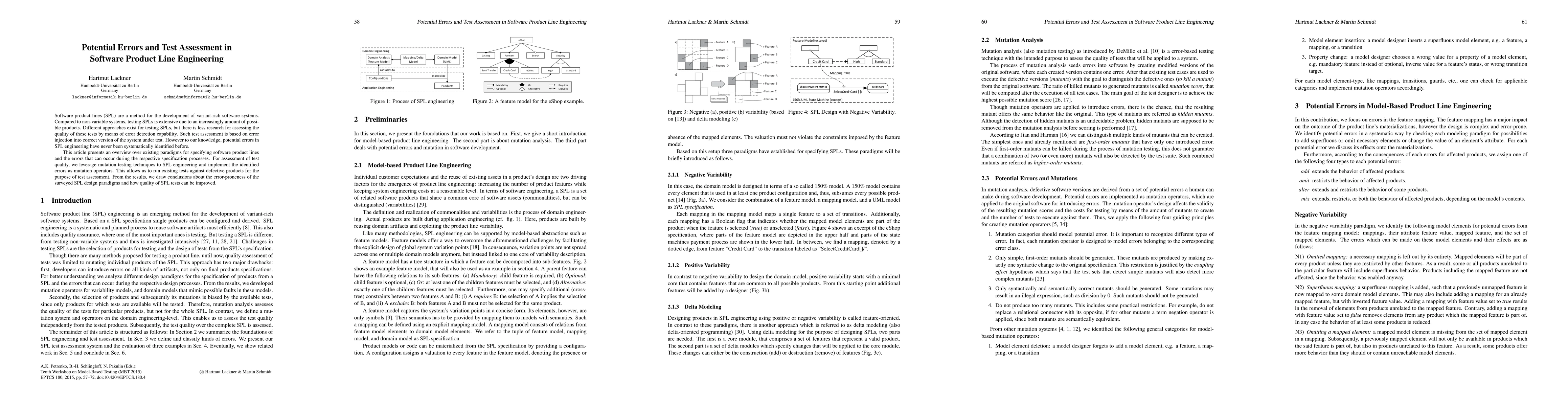 This paper reviews existing paradigms for software product line engineering and identifies potential errors during specification processes. It employs mutation testing to assess test quality by evaluating how well tests detect these errors, thereby improving the quality of tests for software product lines.