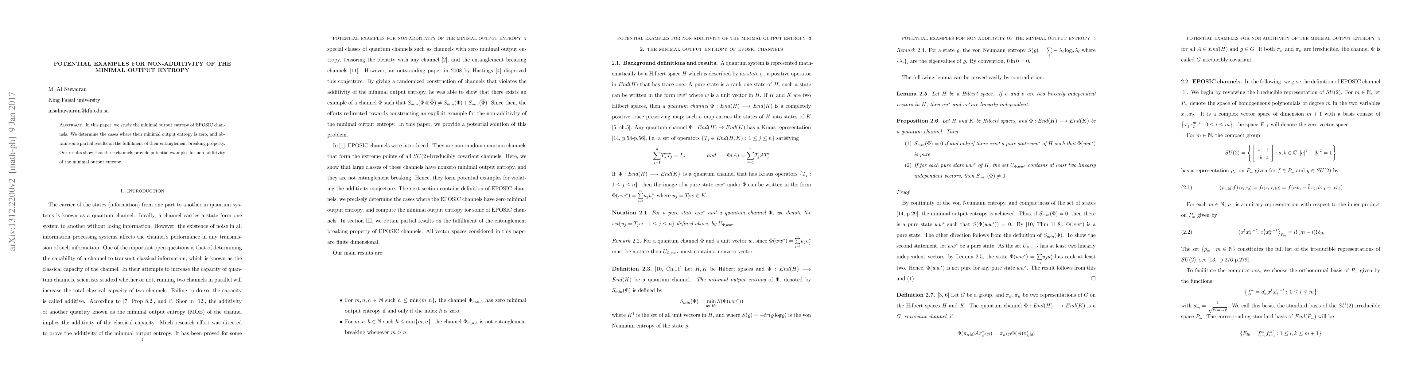 This paper explores EPOSIC channels for non-additivity of minimal output entropy, finding potential examples where minimal output entropy is zero or entanglement breaking is not fully fulfilled.