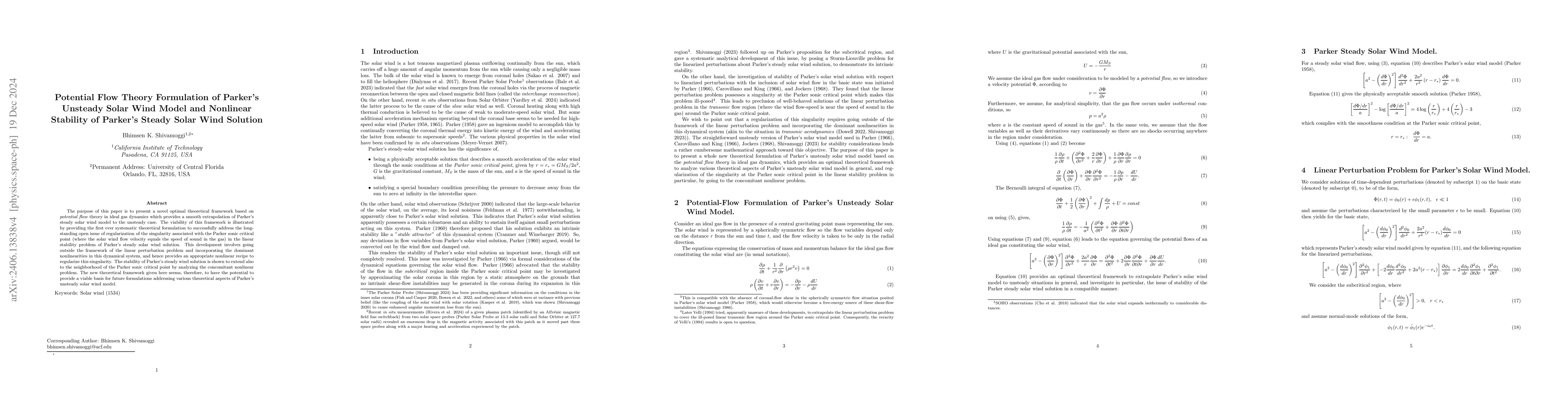 This paper presents a novel potential flow formulation to regularize the singularity at Parker's sonic critical point in the unsteady solar wind model, incorporating nonlinear effects beyond linear perturbation theory and demonstrating the stability of the solar wind solution in its vicinity.