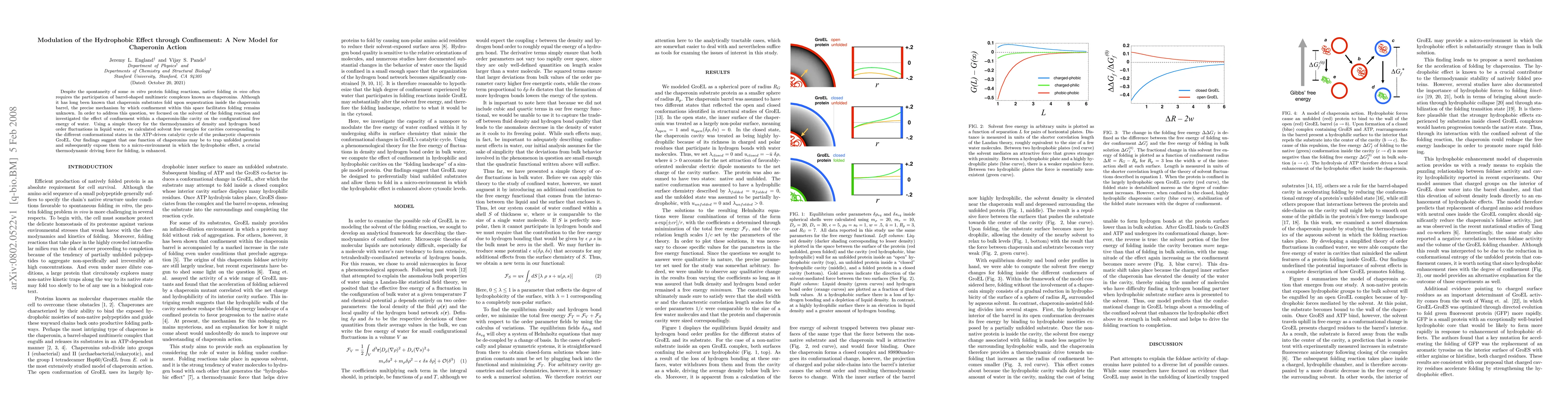 This study explores how chaperonins, barrel-shaped protein complexes, might modulate the hydrophobic effect to facilitate protein folding. By examining solvent reorganization within chaperonin cavities, researchers propose that chaperonins enhance the hydrophobic effect, crucial for folding, in a micro-environment sequestered from the bulk solvent.