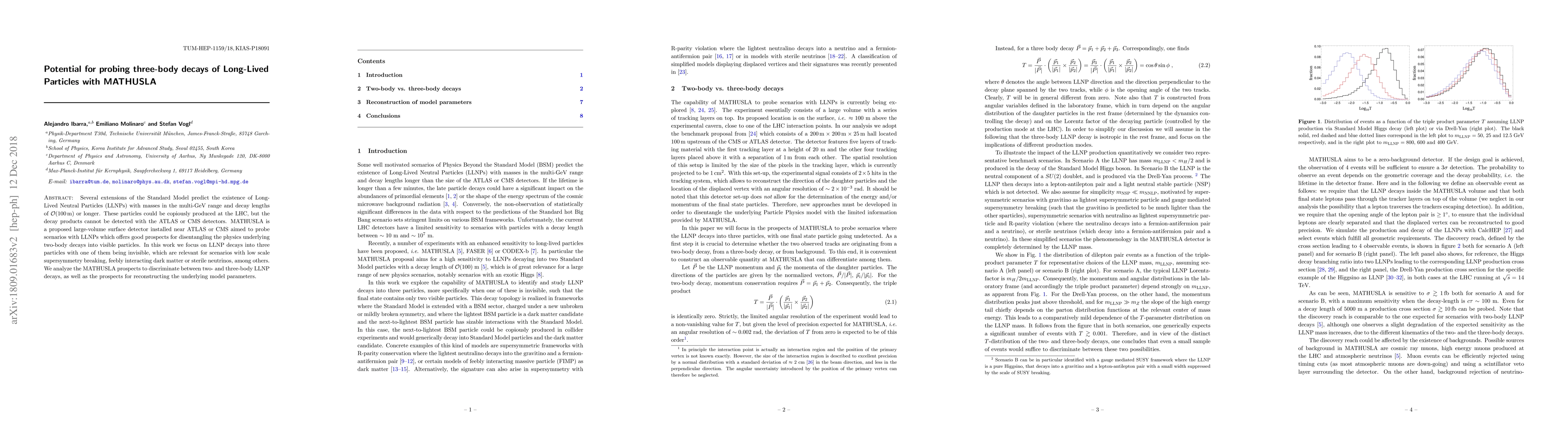 Several extensions of the Standard Model predict the existence of Long-Lived Neutral Particles (LLNPs) with masses in the multi-GeV range and decay lengths of O(100 m) or longer. These particles could be copiously produced at the LHC, but the decay products cannot be detected with the ATLAS or CMS detectors. MATHUSLA is a proposed large-volume surface detector installed near ATLAS or CMS aimed to probe scenarios with LLNPs which offers good prospects for disentangling the physics underlying two-body decays into visible particles. In this work we focus on LLNP decays into three particles with one of them being invisible, which are relevant for scenarios with low scale supersymmetry breaking, feebly interacting dark matter or sterile neutrinos, among others. We analyze the MATHUSLA prospects to discriminate between two- and three-body LLNP decays, as well as the prospects for reconstructing the underlying model parameters.