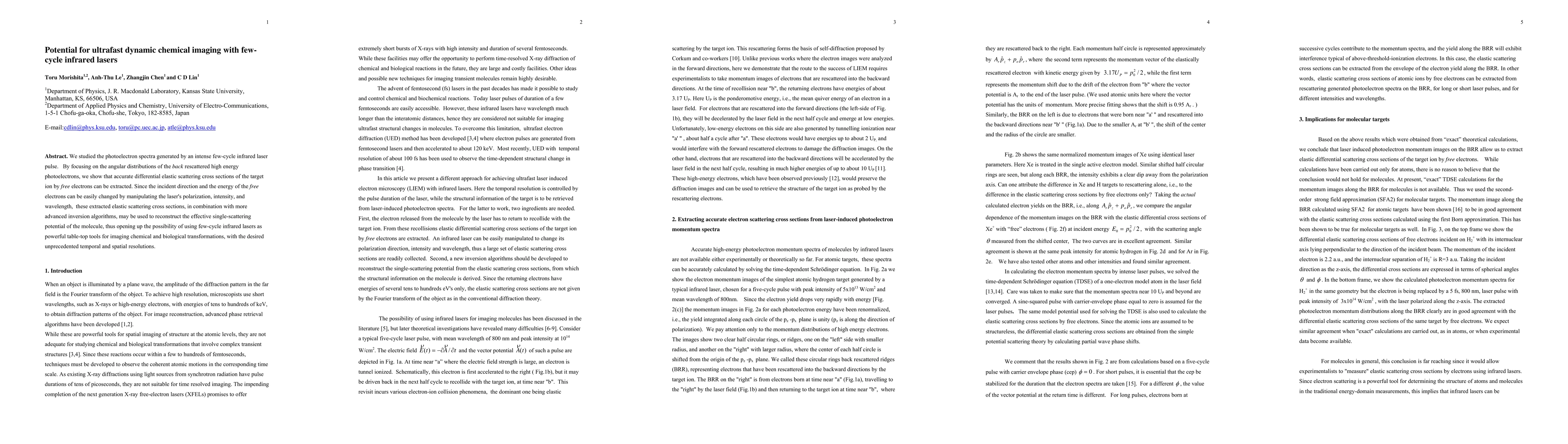 We studied the photoelectron spectra generated by an intense few-cycle infrared laser pulse. By focusing on the angular distributions of the back rescattered high energy photoelectrons, we show that accurate differential elastic scattering cross sections of the target ion by free electrons can be extracted. Since the incident direction and the energy of the free electrons can be easily changed by manipulating the laser's polarization, intensity, and wavelength, these extracted elastic scattering cross sections, in combination with more advanced inversion algorithms, may be used to reconstruct the effective single-scattering potential of the molecule, thus opening up the possibility of using few-cycle infrared lasers as powerful table-top tools for imaging chemical and biological transformations, with the desired unprecedented temporal and spatial resolutions.