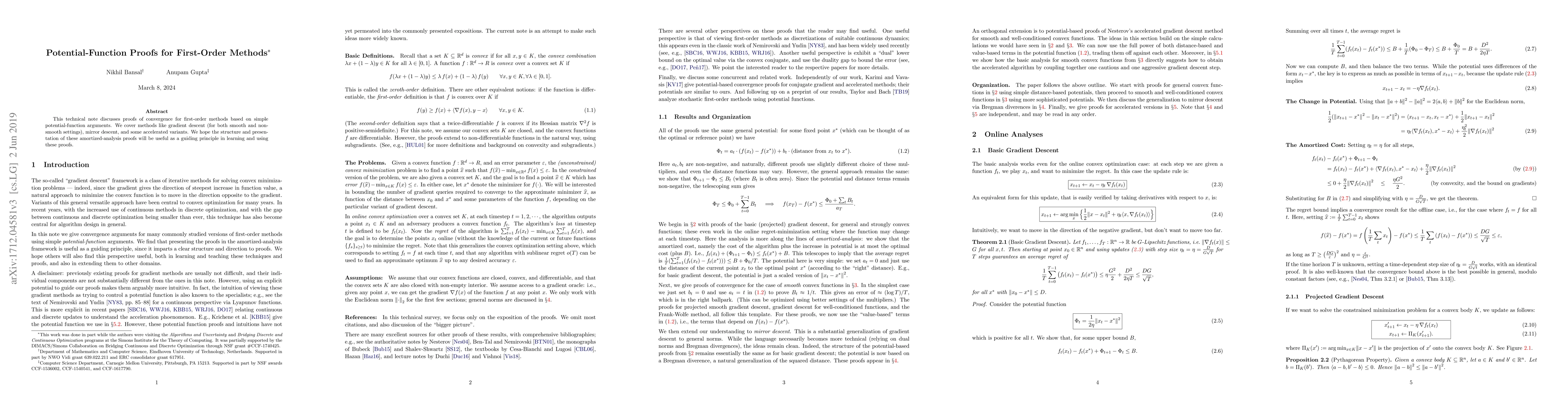 This research paper provides simple potential-function proofs for convergence of first-order methods in optimization, including gradient descent and mirror descent, making it accessible to non-experts.