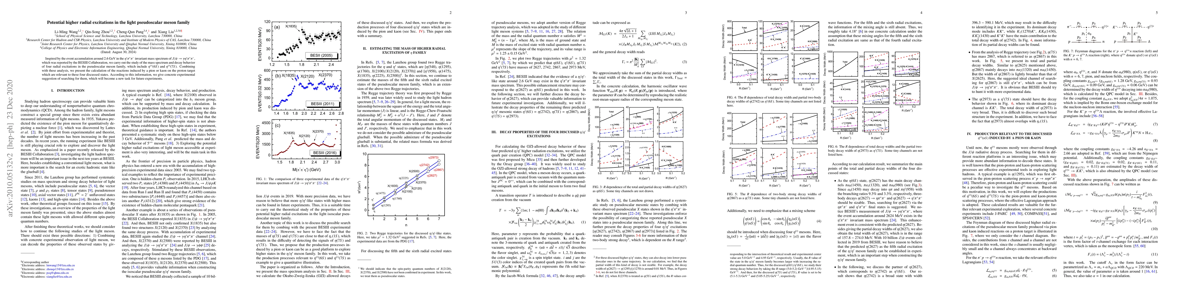This paper investigates the mass spectrum and decay behavior of four radial excitations in the pseudoscalar meson family, including $\eta^{(\prime)}(6S)$ and $\eta^{(\prime)}(7S)$, inspired by the BESIII Collaboration's findings. It also proposes experimental methods for detecting these states through reactions involving pions or kaons on a proton target.