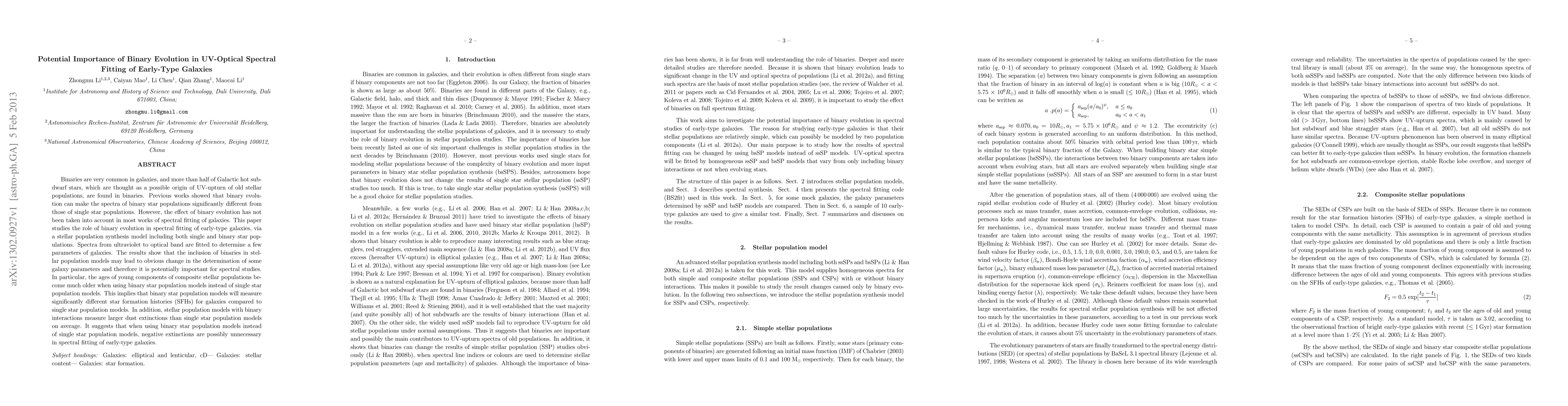 This paper investigates the impact of binary evolution on the spectral fitting of early-type galaxies, finding that incorporating binary star populations significantly alters the determination of galaxy parameters, particularly making young stellar components appear older and necessitating less dust extinction in spectral models.