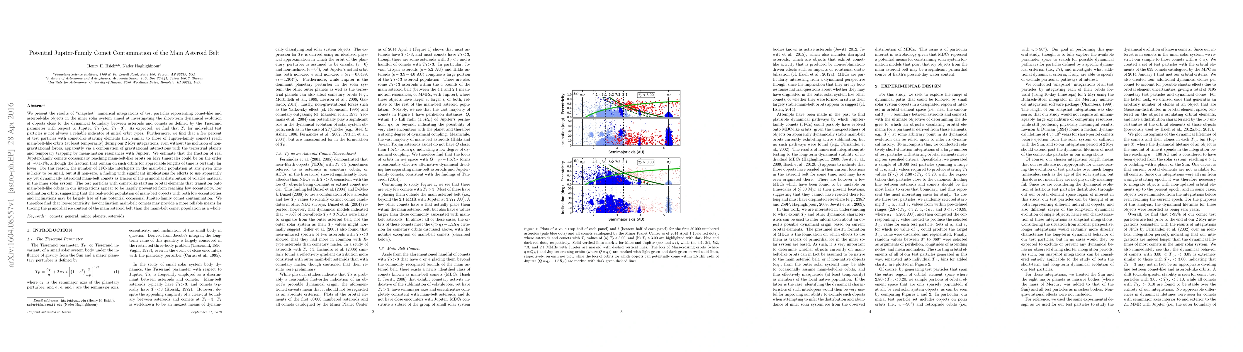 We present the results of "snapshot" numerical integrations of test particles representing comet-like and asteroid-like objects in the inner solar system aimed at investigating the short-term dynamical evolution of objects close to the dynamical boundary between asteroids and comets as defined by the Tisserand parameter with respect to Jupiter, T_J (i.e., T_J=3). As expected, we find that T_J for individual test particles is not always a reliable indicator of initial orbit types. Furthermore, we find that a few percent of test particles with comet-like starting elements (i.e., similar to Jupiter-family comets) reach main-belt-like orbits (at least temporarily) during our 2 Myr integrations, even without the inclusion of non-gravitational forces, apparently via a combination of gravitational interactions with the terrestrial planets and temporary trapping by mean-motion resonances with Jupiter. We estimate that the fraction of real Jupiter-family comets occasionally reaching main-belt-like orbits on Myr timescales could be on the order of ~0.1-1%, although the fraction that remain on such orbits for appreciable lengths of time is certainly far lower. Thus, the number of JFC-like interlopers in the main-belt population at any given time is likely to be small, but still non-zero, a finding with significant implications for efforts to use main-belt comets to trace the primordial distribution of volatile material in the inner solar system. The test particles with comet-like starting orbital elements that transition onto main-belt-like orbits in our integrations appear to be largely prevented from reaching low eccentricity, low inclination orbits. We therefore find that low-eccentricity, low-inclination main-belt comets may provide a more reliable means for tracing the primordial ice content of the main asteroid belt than the main-belt comet population as a whole.