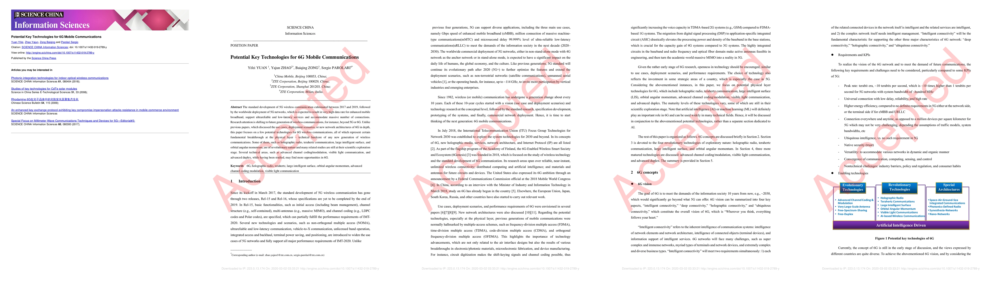 This paper explores potential key technologies for 6G mobile communications, including holographic radio, terahertz communication, and large intelligent surfaces, which represent fundamental breakthroughs at the physical layer of wireless communications. The research focuses on these revolutionary and emerging areas to drive advancements in future generations of wireless technology.
