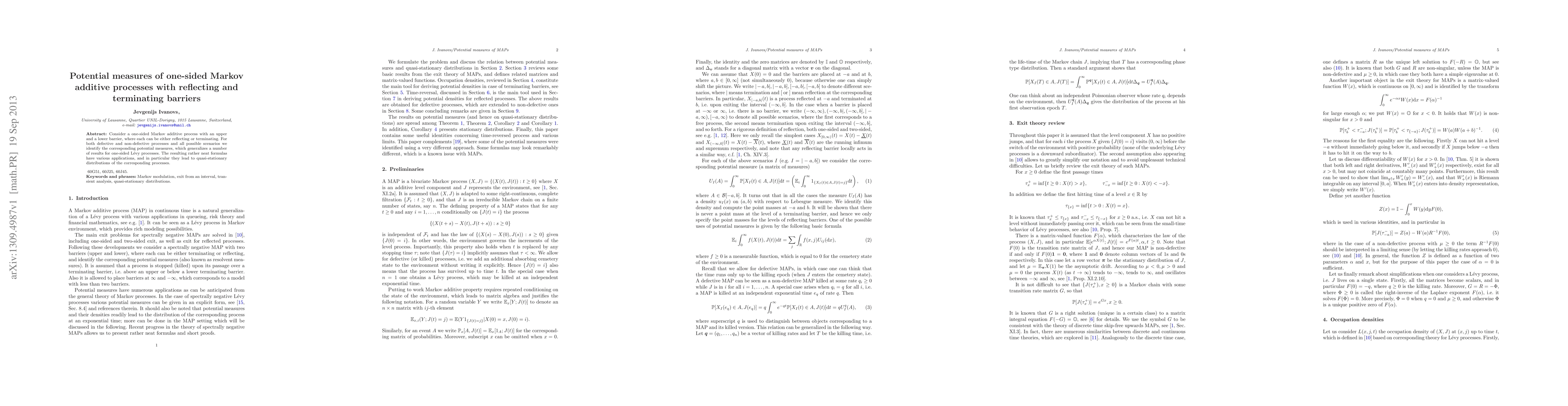 Consider a one-sided Markov additive process with an upper and a lower barrier, where each can be either reflecting or terminating. For both defective and non-defective processes and all possible scenarios we identify the corresponding potential measures, which generalizes a number of results for one-sided Levy processes. The resulting rather neat formulas have various applications, and in particular they lead to quasi-stationary distributions of the corresponding processes.