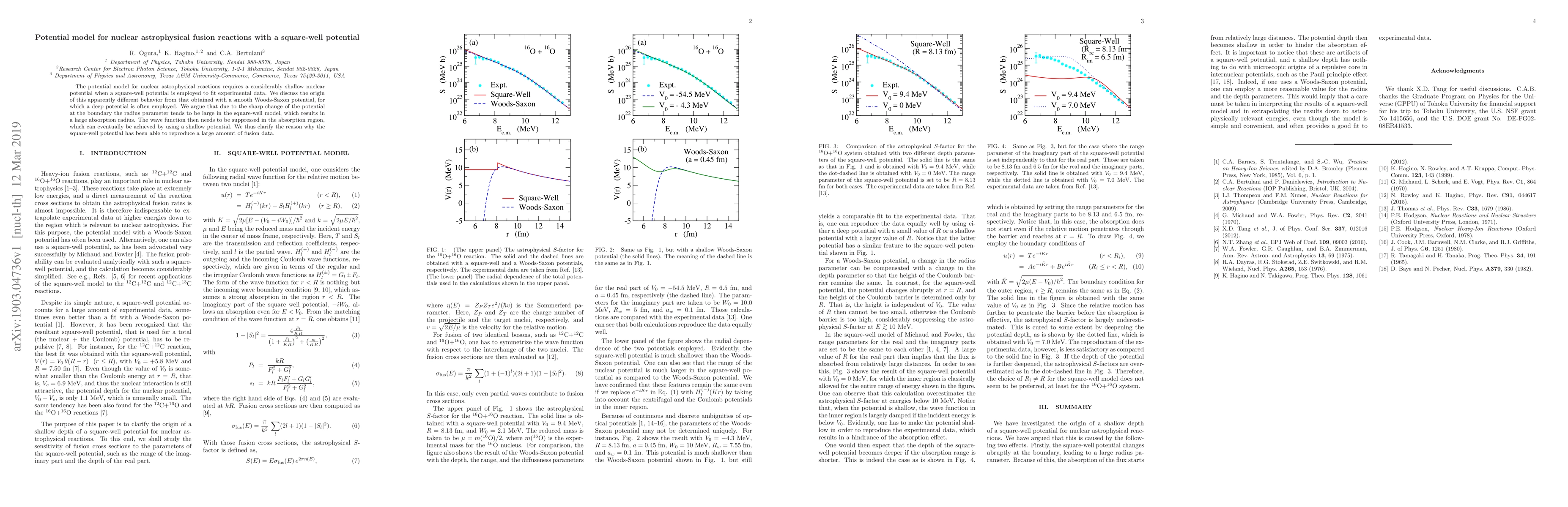 This paper explores the use of a square-well potential in modeling nuclear astrophysical fusion reactions, finding that a shallow potential is required to fit experimental data. The study explains that the sharp potential boundary leads to a larger radius parameter and absorption radius, necessitating a suppression of the wave function in the absorption region, which is achieved with a shallow potential.