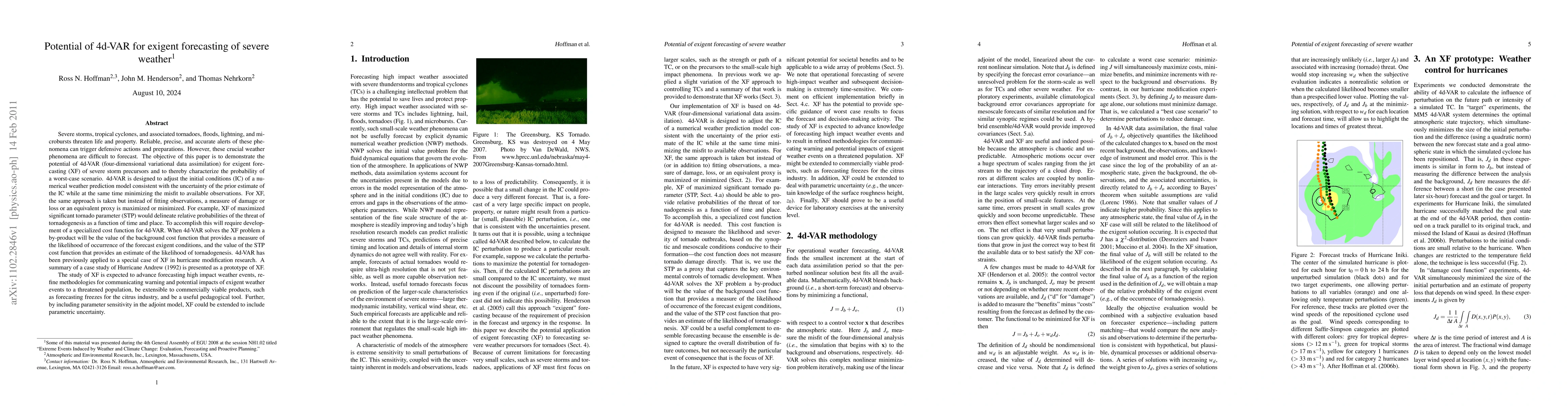 This paper explores the potential of 4d-VAR for precise forecasting of severe weather events like tornadoes, floods, and storms, aiming to provide early warnings that can save lives and property. The research demonstrates a new approach to using 4d-VAR to maximize damage or loss minimization, offering insights into high-impact weather events and their likelihood of occurrence.