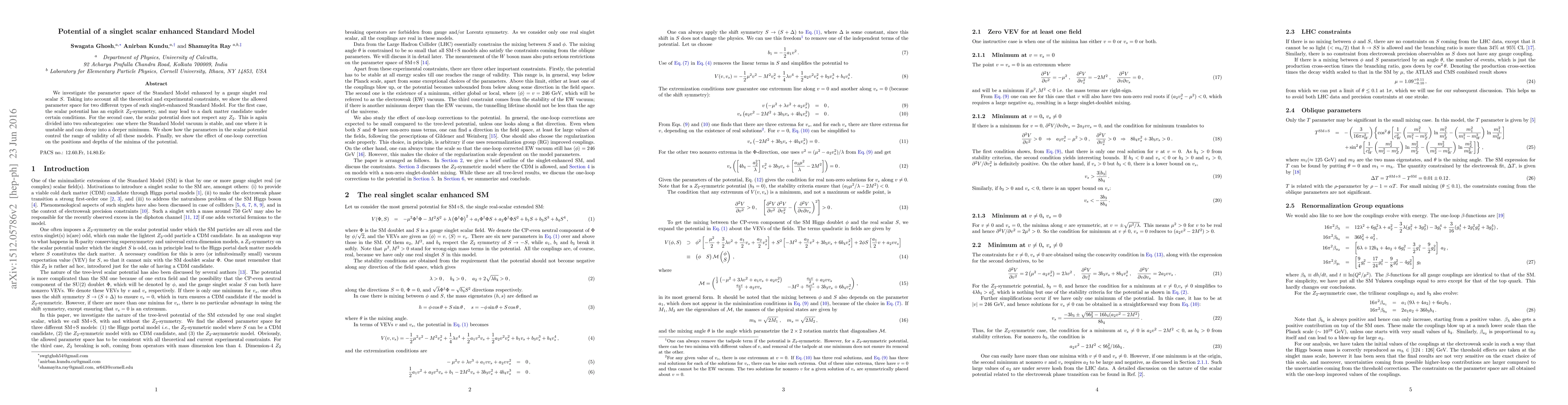 This paper explores the parameter space of a Standard Model augmented with a gauge singlet real scalar $S$, considering various theoretical and experimental constraints. It examines two types of models, one with $Z_2$-symmetry potentially leading to dark matter, and another without $Z_2$-symmetry, further divided into stable and unstable vacuum scenarios.
