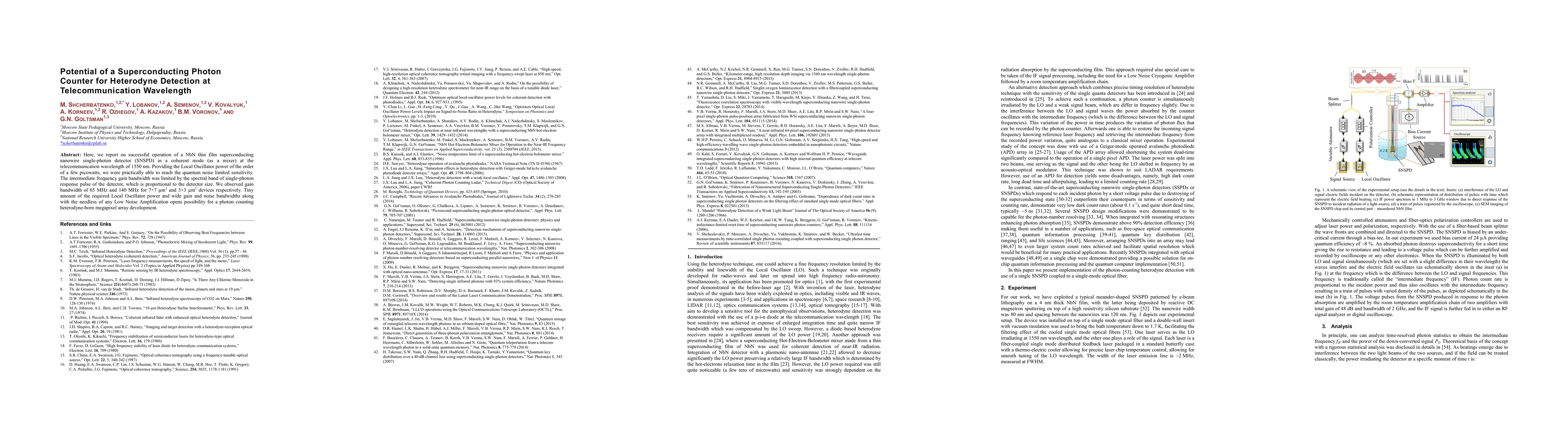 Researchers successfully operated a superconducting photon counter at telecommunication wavelength, achieving quantum noise-limited sensitivity with minimal Local Oscillator power. This breakthrough opens possibilities for megapixel array development in photon counting heterodyne detection.