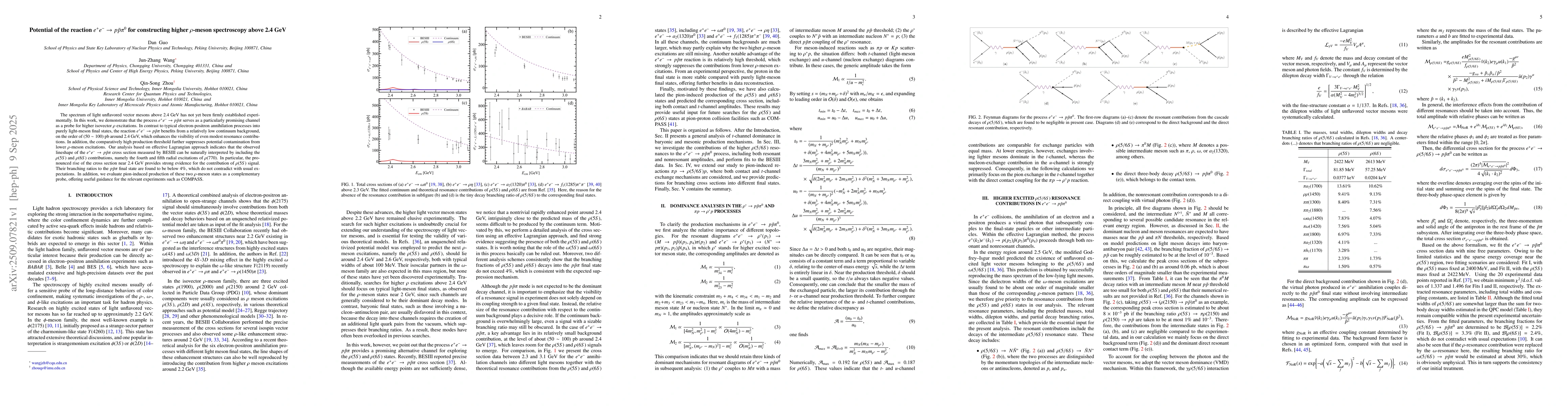The spectrum of light unflavored vector mesons above 2.4 GeV has not yet been firmly established experimentally. In this work, we demonstrate that the process $e^+e^- \to p\bar{p}\pi$ serves as a particularly promising channel as a probe for higher isovector $\rho$ excitations. In contrast to typical electron-positron annihilation processes into purely light-meson final states, the reaction $e^+e^- \to p\bar{p}\pi$ benefits from a relatively low continuum background, on the order of $(50\sim100)~\text{pb}$ around 2.4 GeV, which enhances the visibility of even modest resonance contributions. In addition, the comparatively high production threshold further suppresses potential contamination from lower $\rho$-meson excitations. Our analysis based on effective Lagrangian approach indicates that the observed lineshape of the $e^+e^- \to p\bar{p}\pi$ cross section measured by BESIII can be naturally interpreted by including the $\rho(5S)$ and $\rho(6S)$ contributions, namely the fourth and fifth radial excitations of $\rho(770)$. In particular, the pronounced rise of the cross section near 2.4 GeV provides strong evidence for the contribution of $\rho(5S)$ signal. Their branching ratios to the $p\bar{p}\pi$ final state are found to be below 4\%, which do not contradict with usual expectations. In addition, we evaluate pion-induced production of these two $\rho$-meson states as a complementary probe, offering useful guidance for the relevant experiments such as COMPASS.