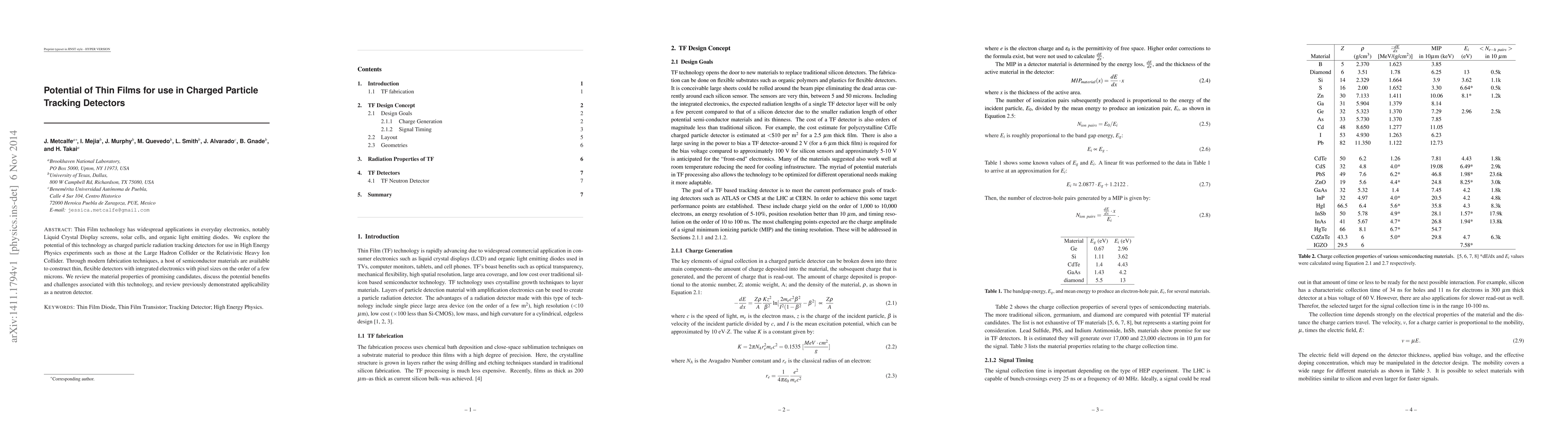 Thin Film technology has widespread applications in everyday electronics, notably Liquid Crystal Display screens, solar cells, and organic light emitting diodes. We explore the potential of this technology as charged particle radiation tracking detectors for use in High Energy Physics experiments such as those at the Large Hadron Collider or the Relativistic Heavy Ion Collider. Through modern fabrication techniques, a host of semiconductor materials are available to construct thin, flexible detectors with integrated electronics with pixel sizes on the order of a few microns. We review the material properties of promising candidates, discuss the potential benefits and challenges associated with this technology, and review previously demonstrated applicability as a neutron detector.