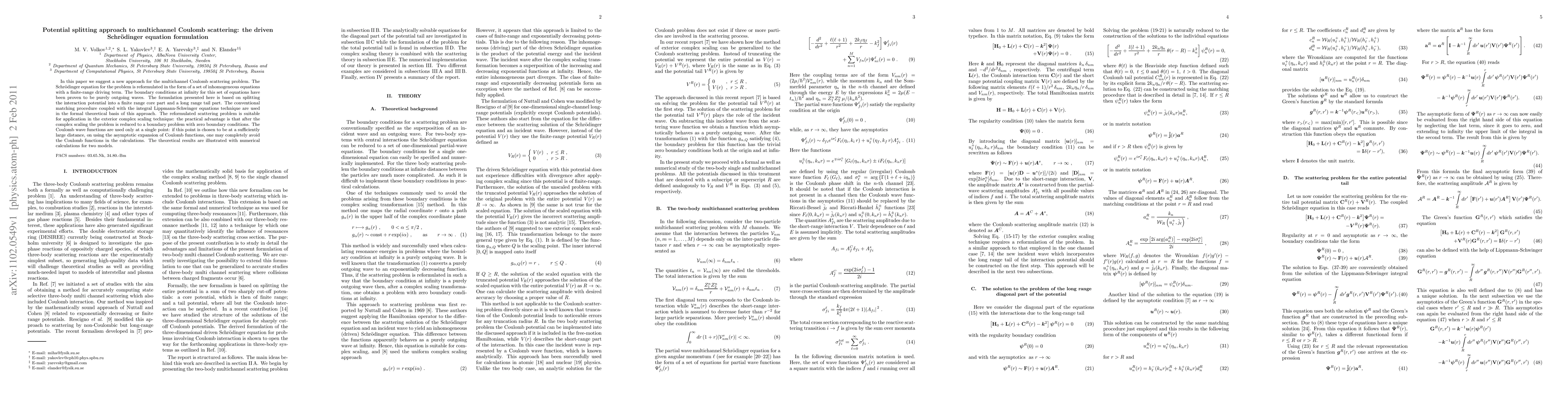 In this paper we suggest a new approach for the multichannel Coulomb scattering problem. The Schr\"{o}dinger equation for the problem is reformulated in the form of a set of inhomogeneous equations with a finite-range driving term. The boundary conditions at infinity for this set of equations have been proven to be purely outgoing waves. The formulation {presented here} is based on splitting the interaction potential into a finite range core part and a long range tail part. The conventional matching procedure coupled with the integral Lippmann-Schwinger equations technique are used in the formal theoretical basis of this approach. The reformulated scattering problem is suitable for application in the exterior complex scaling technique: the practical advantage is that after the complex scaling the problem is reduced to a boundary problem with zero boundary conditions. The Coulomb wave functions are used only at a single point: if this point is chosen to be at a sufficiently large distance, on using the asymptotic expansion of Coulomb functions, one may completely avoid the Coulomb functions in the calculations. The theoretical results are illustrated with numerical calculations for two models.