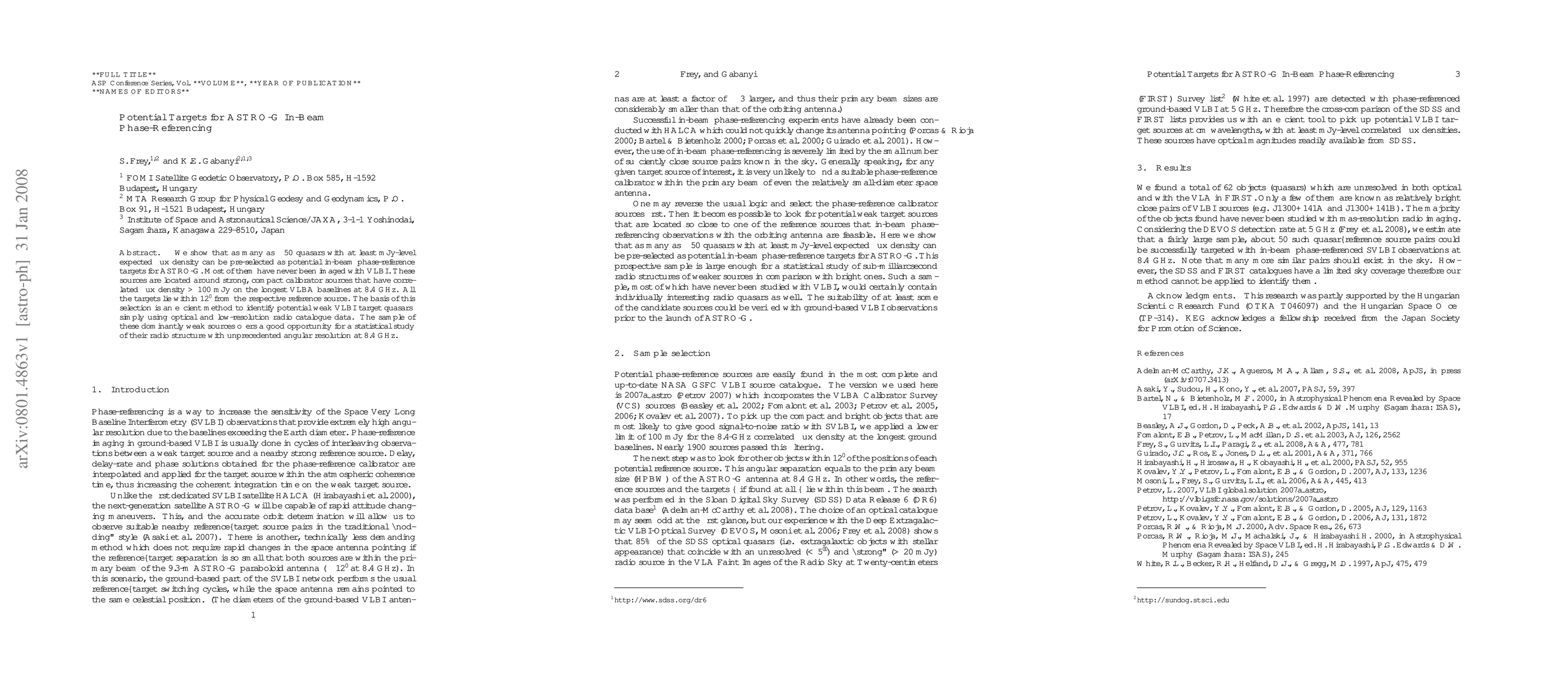A study identified ~50 quasars as potential phase-reference targets for ASTRO-G's VLBI, leveraging optical and low-resolution radio catalogue data to select weak sources near strong calibrator sources.