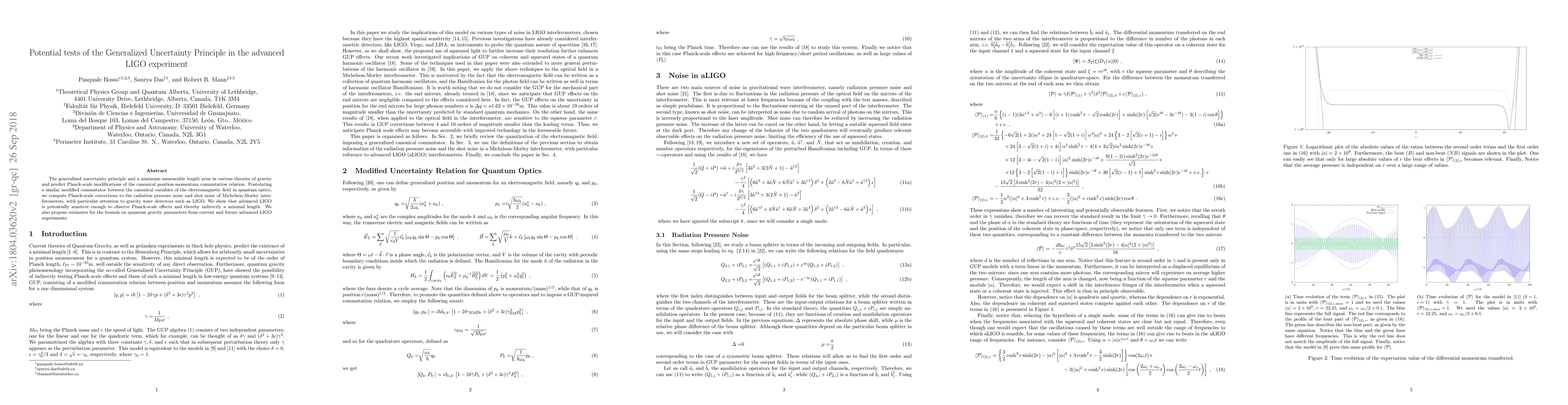 This paper explores how the Generalized Uncertainty Principle could be tested using the advanced LIGO interferometer, predicting Planck-scale modifications in the electromagnetic field's canonical variables. It proposes that LIGO may detect these effects, offering a way to indirectly observe a minimal measurable length and providing estimates for the bounds on quantum gravity parameters.