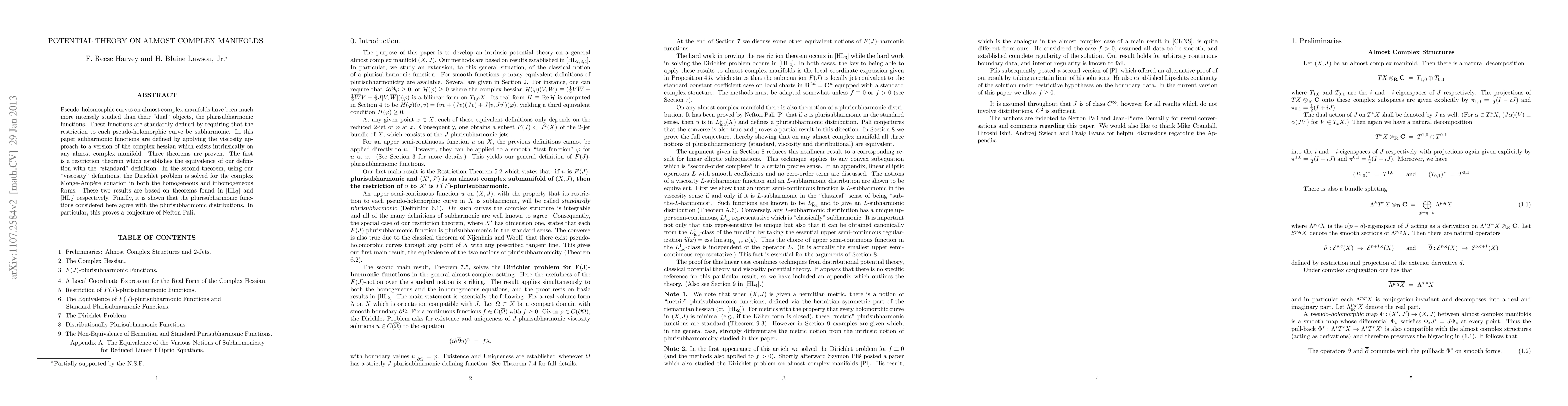 This paper explores the definition of subharmonic functions on almost complex manifolds using a viscosity approach to the complex Hessian. It proves three theorems: a restriction theorem, a solution to the Dirichlet problem for the complex Monge-Ampère equation, and agreement between plurisubharmonic functions and distributions, thus confirming a conjecture.