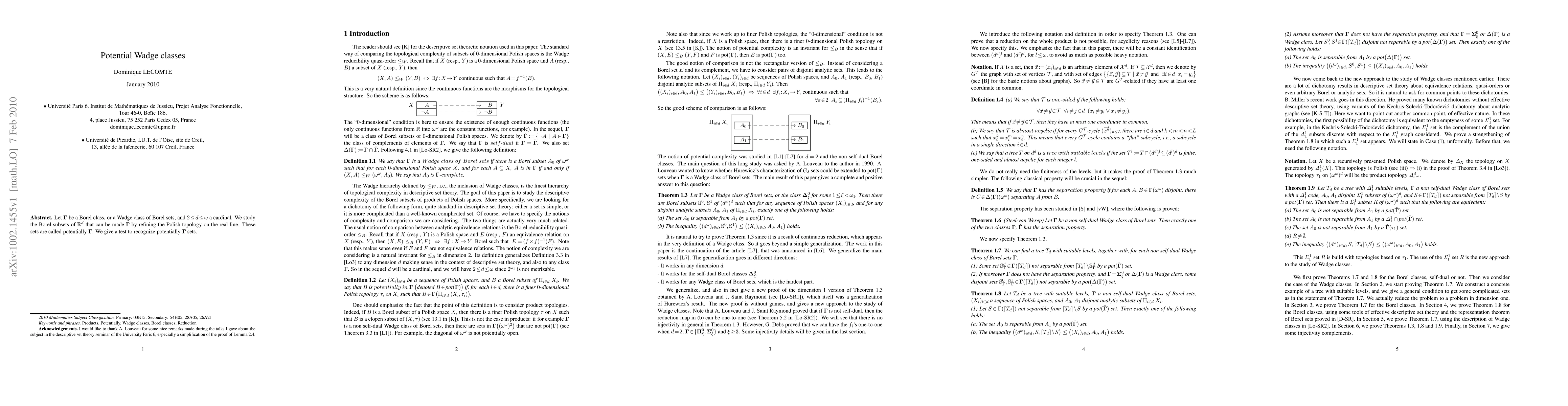 Let $\bf\Gamma$ be a Borel class, or a Wadge class of Borel sets, and $2\leq d\leq\omega$ a cardinal. We study the Borel subsets of ${\mathbb R}^d$ that can be made $\bf\Gamma$ by refining the Polish topology on the real line. These sets are called potentially $\bf\Gamma$. We give a test to recognize potentially $\bf\Gamma$ sets.