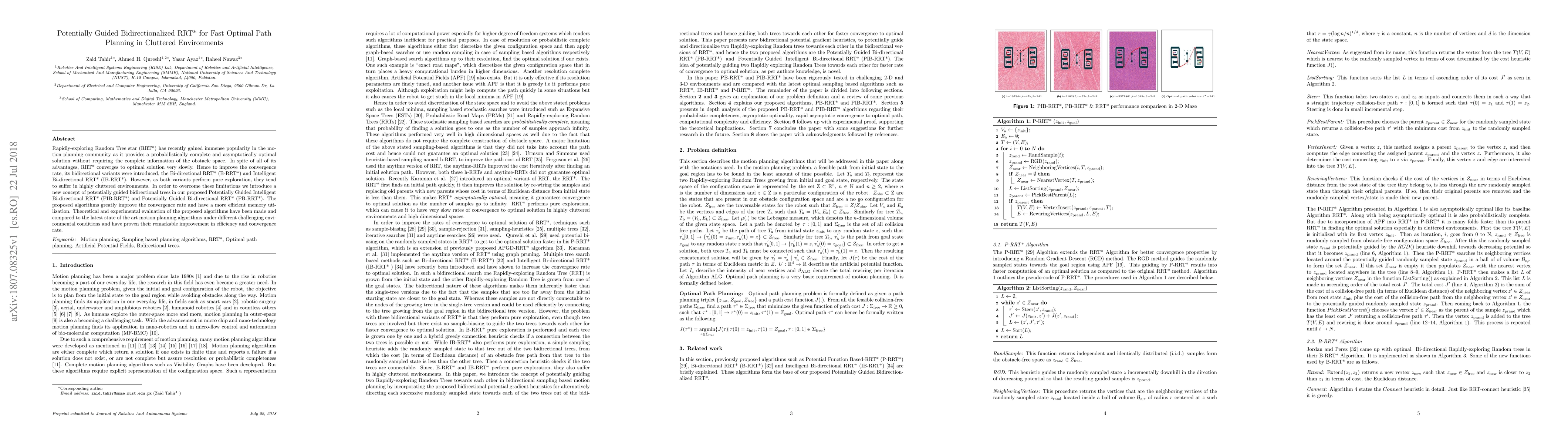 The paper proposes potentially guided bidirectional RRT* algorithms (PIB-RRT* and PB-RRT*) to enhance the convergence rate and efficiency of motion planning in cluttered environments. The new algorithms outperform existing bidirectional RRT* variants by improving convergence speed and memory utilization, as demonstrated through theoretical and experimental evaluations.