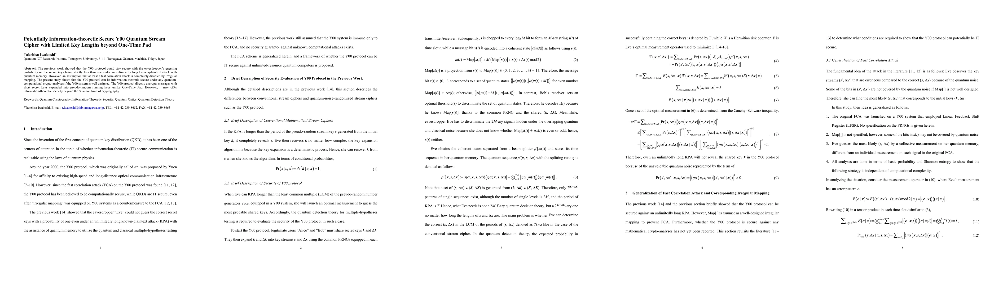 The Y00 protocol offers information-theoretic security beyond traditional cryptography if well-designed, potentially securing it with limited key lengths.