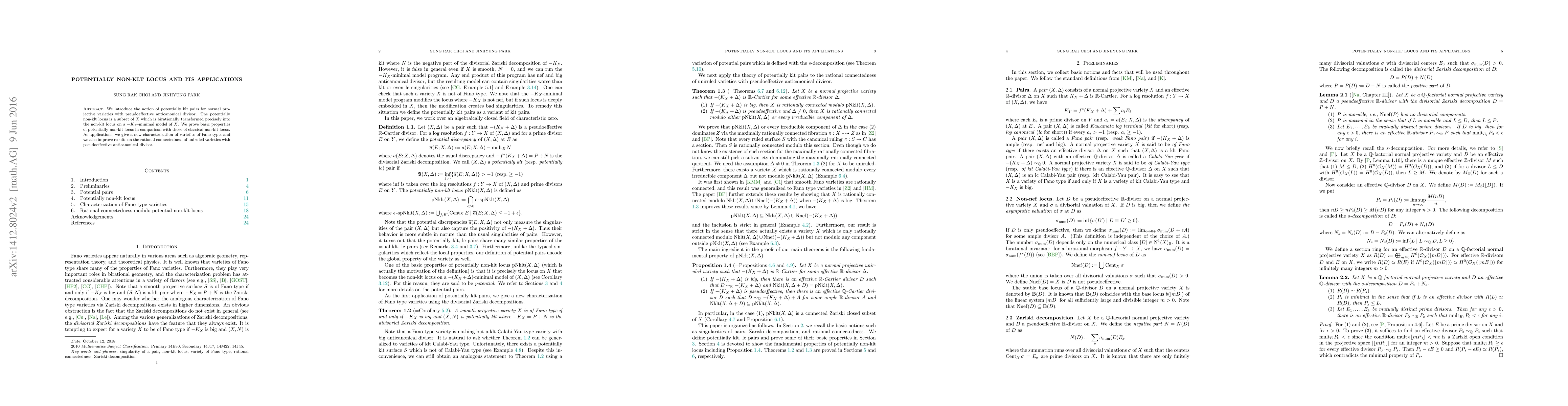 This paper introduces potentially klt pairs for normal projective varieties and defines the potentially non-klt locus, showing its properties and relation to classical non-klt locus. Applications include a new characterization of Fano varieties and enhancements to the rational connectedness of uniruled varieties.
