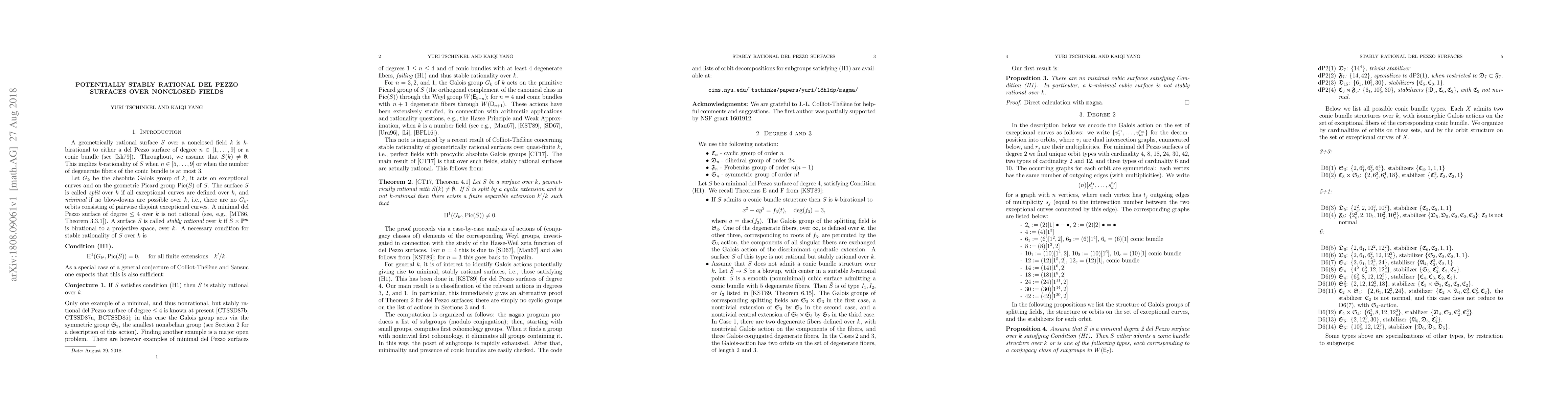 We classify Galois actions on Picard lattices of del Pezzo surfaces of degrees 1,2, and 3 giving rise to minimal surfaces with no cohomological obstructions to stable rationality.