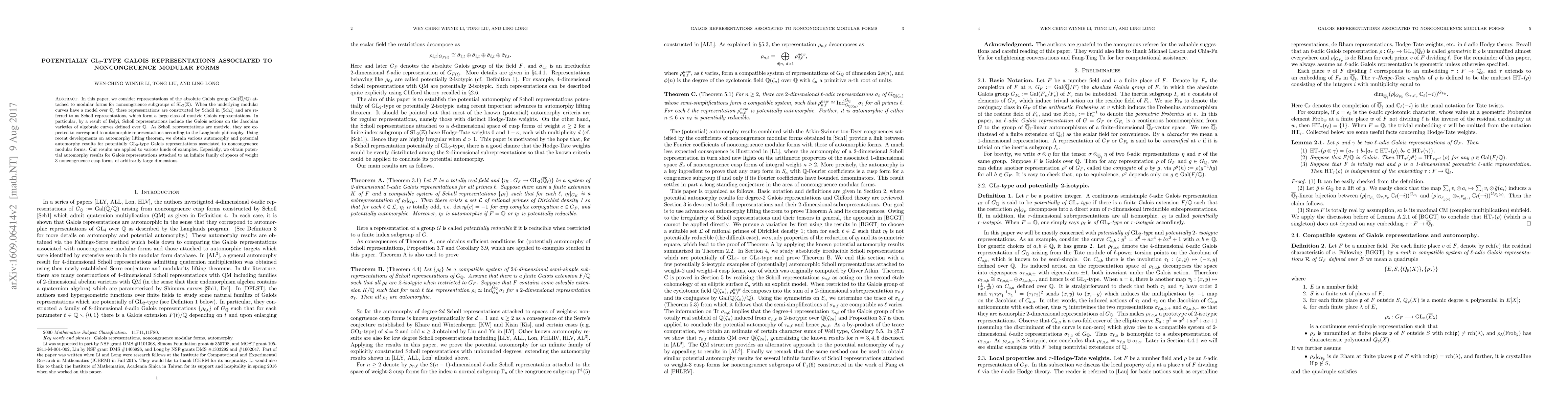 This paper explores Galois representations of the absolute Galois group associated with modular forms for noncongruence subgroups of $\text{SL}_2(\mathbb Z)$. It focuses on Scholl representations, which are expected to correspond to automorphic representations, and uses recent advances in automorphy lifting to obtain automorphy and potential automorphy results for $\text{GL}_2$-type representations linked to these modular forms.