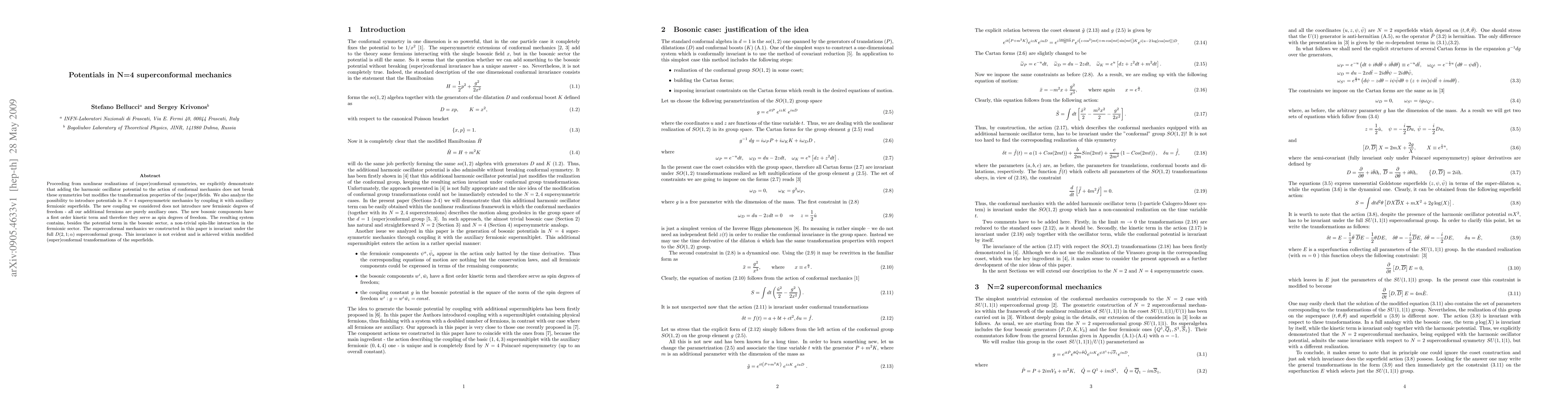 This paper explores the addition of harmonic oscillator potentials to N=4 superconformal mechanics, demonstrating that such potentials do not break the symmetries but alter the transformation properties of the fields. It introduces auxiliary fermionic superfields to couple with N=4 supersymmetric mechanics, maintaining invariance under the full $D(2,1;\alpha)$ superconformal group.