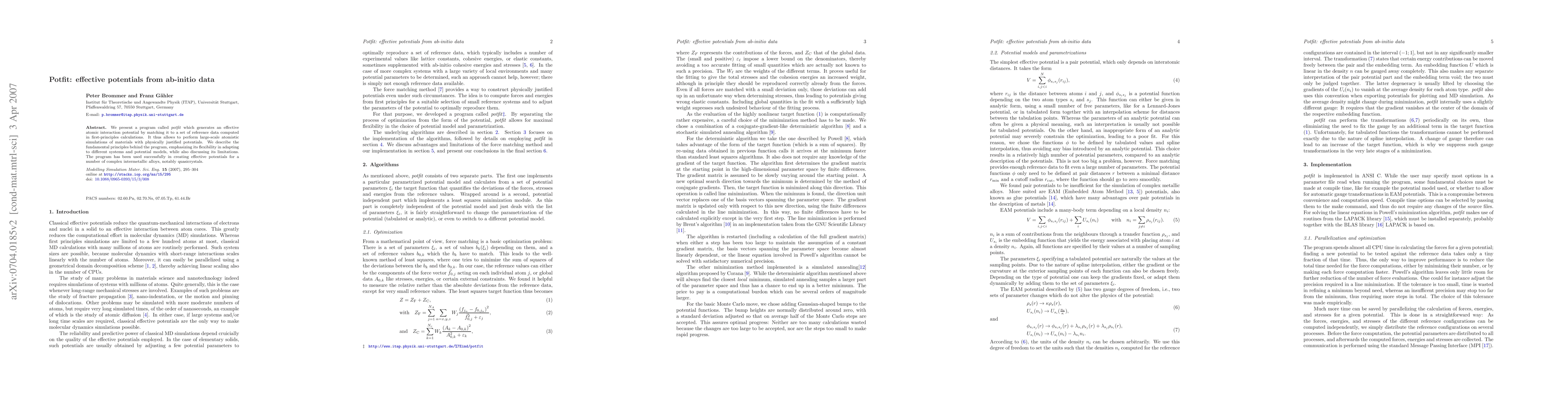 Potfit is a program that generates effective atomic interaction potentials by matching them to ab-initio data, enabling large-scale simulations of materials. It offers flexibility for various systems and potential models but has certain limitations.