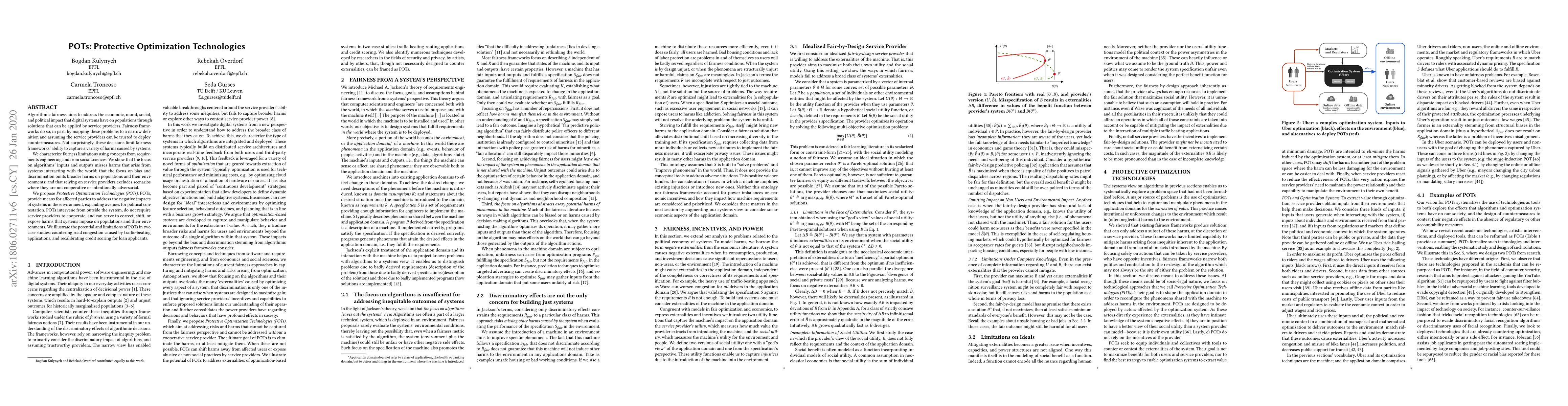 This paper critiques existing algorithmic fairness frameworks for their limited scope and proposes Protective Optimization Technologies (POTs) as an alternative. POTs aim to address broader harms caused by digital systems by intervening from outside, without requiring cooperation from service providers. The paper demonstrates POTs' potential through case studies on traffic congestion and credit scoring.