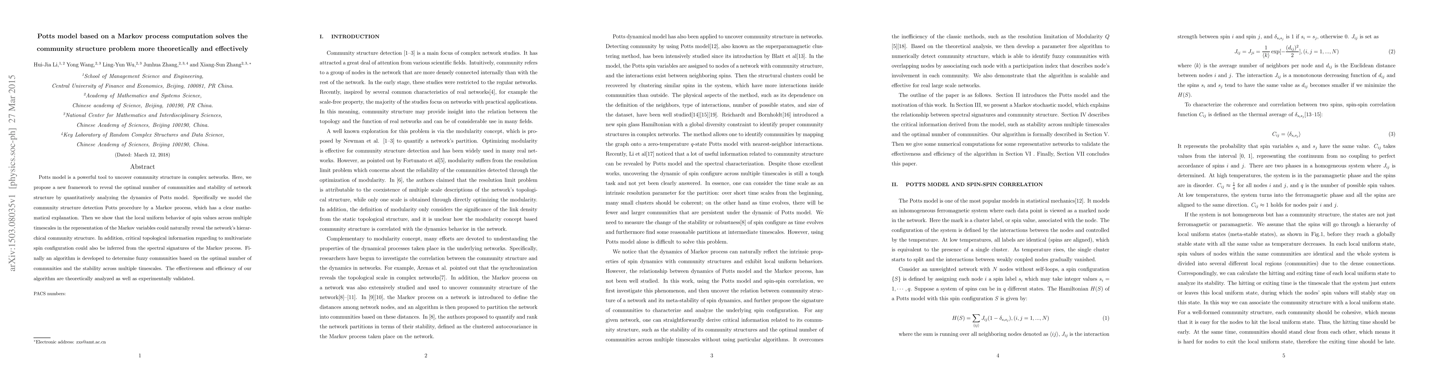 This paper proposes a Potts model based on a Markov process to effectively detect community structures in complex networks, revealing the optimal number of communities and network stability. The algorithm developed determines fuzzy communities and is validated through theoretical analysis and experiments.