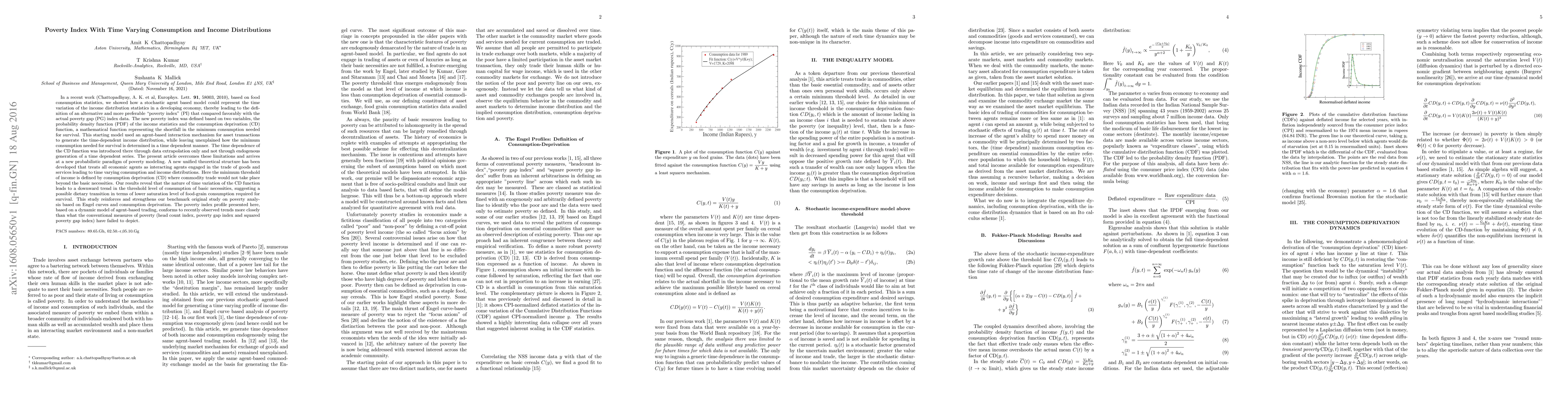 In a recent work (Chattopadhyay, A. K. et al, Europhys. Lett. {\bf 91}, 58003, 2010) based on food consumption statistics, we showed how a stochastic agent based model could represent the time variation of the income distribution statistics in a developing economy, thereby defining an alternative \enquote{poverty index} (PI) that largely agreed with poverty gap index data. This PI used two variables, the probability density function of the income statistics and a consumption deprivation (CD) function, representing the shortfall in the minimum consumption needed for survival. Since the time dependence of the CD function was introduced there through data extrapolation only and not through an endogenous time dependent series, this model left unexplained how the minimum consumption needed for survival varies with time. The present article overcomes these limitations and arrives at a new unified theoretical structure through time varying consumption and income distributions where trade is only allowed when the income exceeds consumption deprivation (CD). Our results reveal that such CD-dynamics reduces the threshold level of consumption of basic necessities, suggesting a possible dietary transition in terms of lower saturation level of food-grain consumption. The new poverty index conforms to recently observed trends more closely than conventional measures of poverty and allows probabilistic prediction of PI for future times.