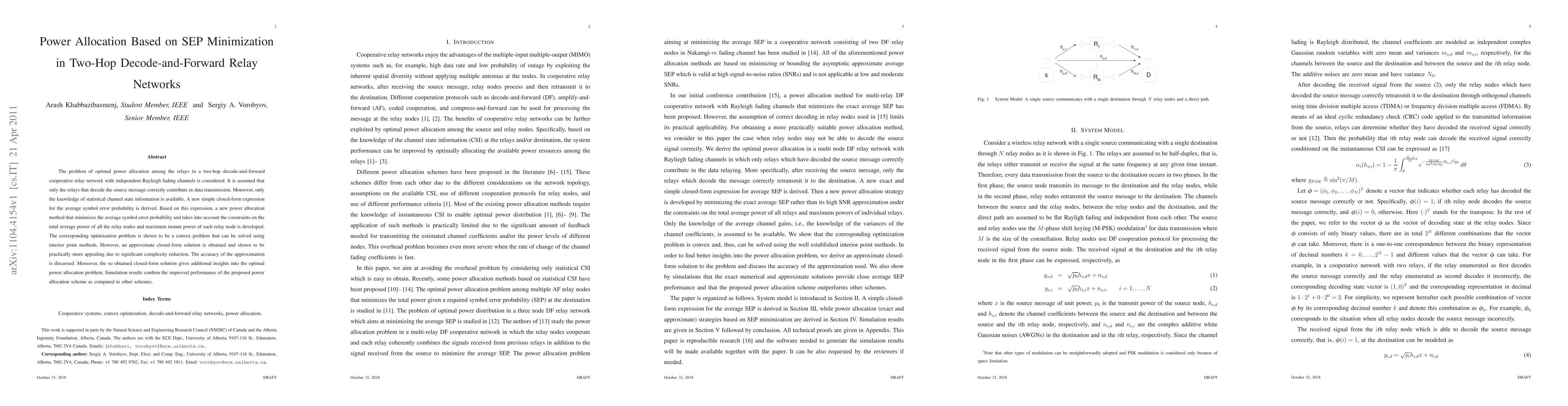 This paper proposes a power allocation method for two-hop decode-and-forward relay networks that minimizes average symbol error probability, leveraging a new closed-form expression for SEP. An approximate closed-form solution is derived for practical implementation, demonstrating significant complexity reduction while maintaining accuracy.