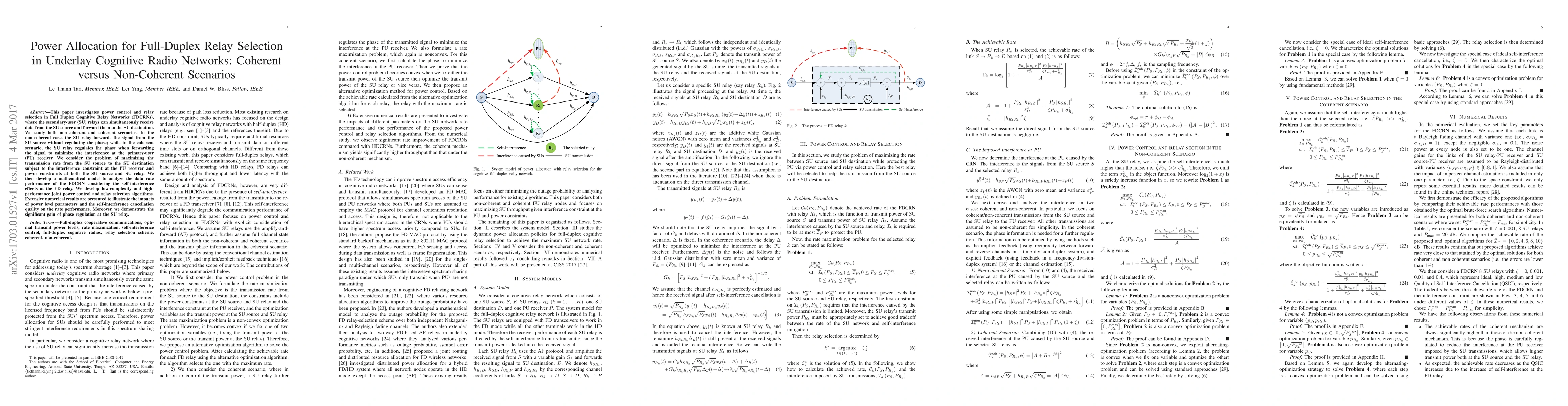This paper explores power allocation and relay selection in Full Duplex Cognitive Relay Networks, comparing non-coherent and coherent scenarios. It develops algorithms to maximize transmission rate while minimizing interference to primary users and presents numerical results highlighting the benefits of phase regulation at the relay.